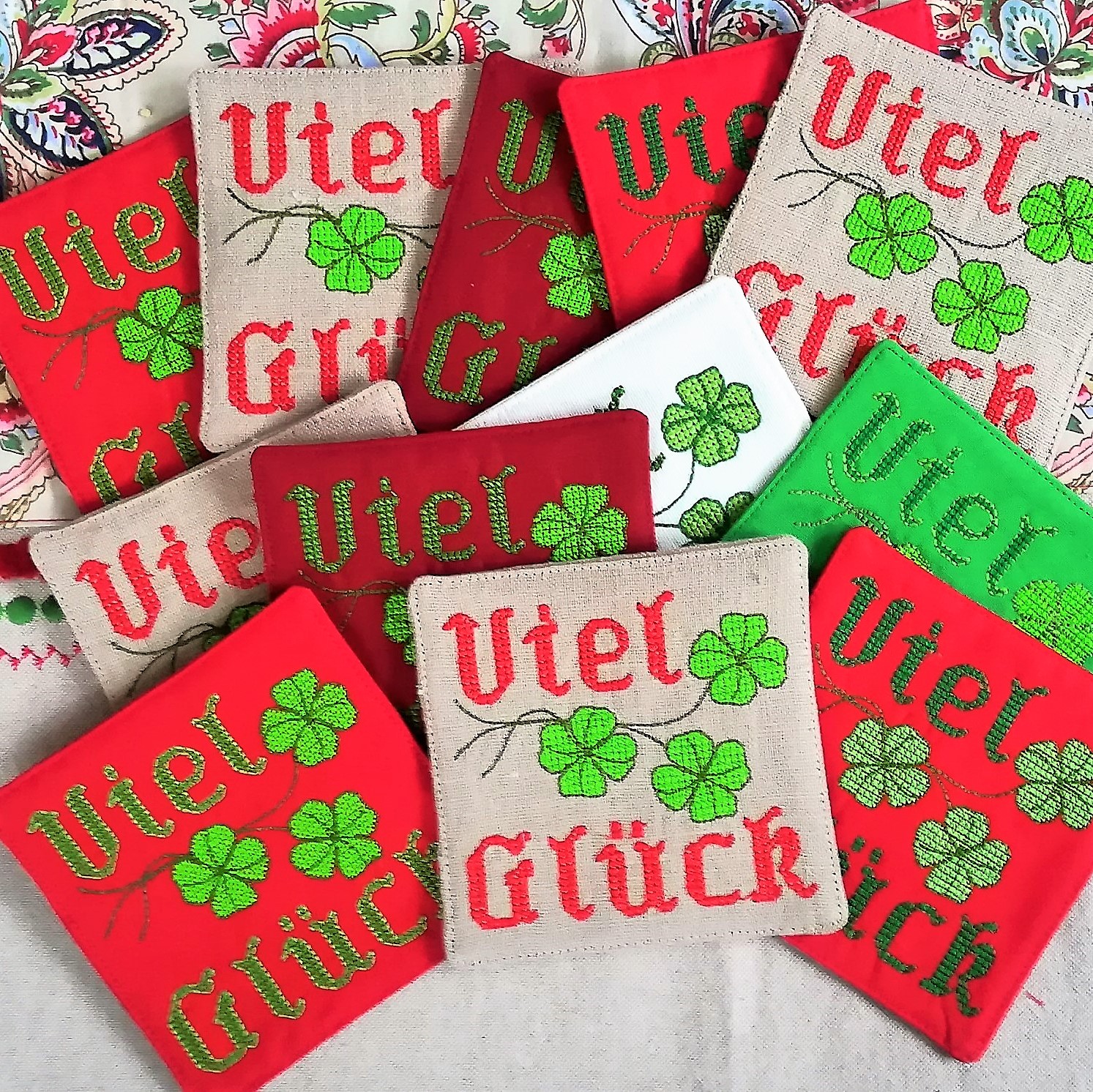 Die Untersetzer habe ich für eine Sylvesterfeier gestickt. Jeder durfte seinen mit nach hause nehmen. Das war ein schöner Übergang ins neue Jahr. :)