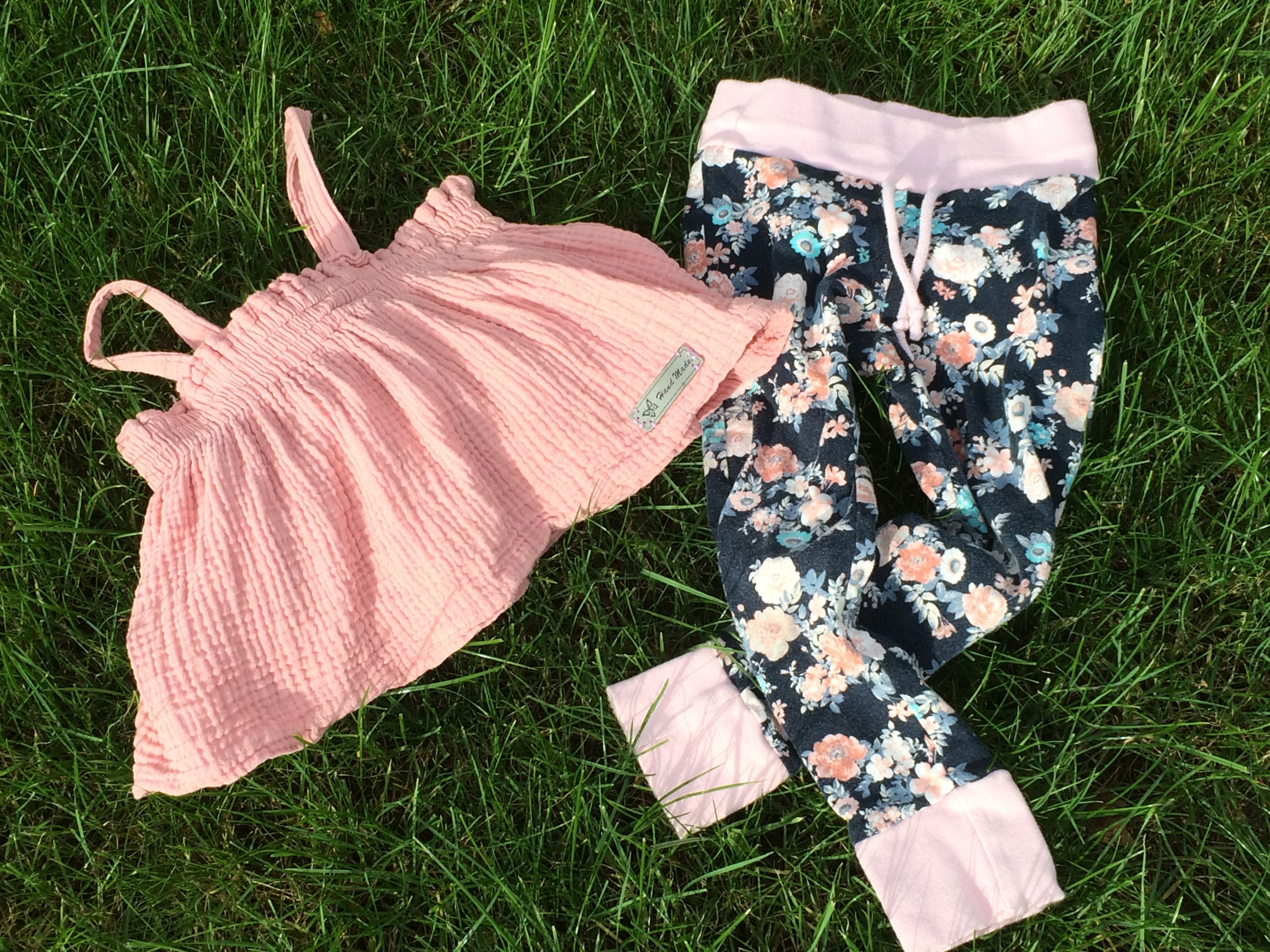 Schnitte: Jogging Pants von Ki-Ba-Doo in Größe 110. Ist aber schon knapp, die nächste muss ich schon größer nähen. Oberteil ist ein abgeändertes Kleid - Schnitt Happy Madita - in Shirtlänge aus Musselin.