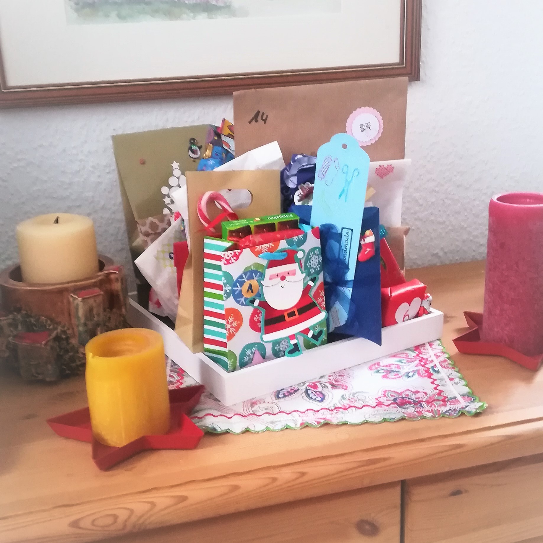 ...ist diesmal völlig anders! Ich habe mich mit anderen Hobbynäherinnen in einer Facebookgruppe zusammen getan und jeder hat 24 Päckchen mit Zubehör liebevoll verpackt und eine hat alles dann zusammengestellt.