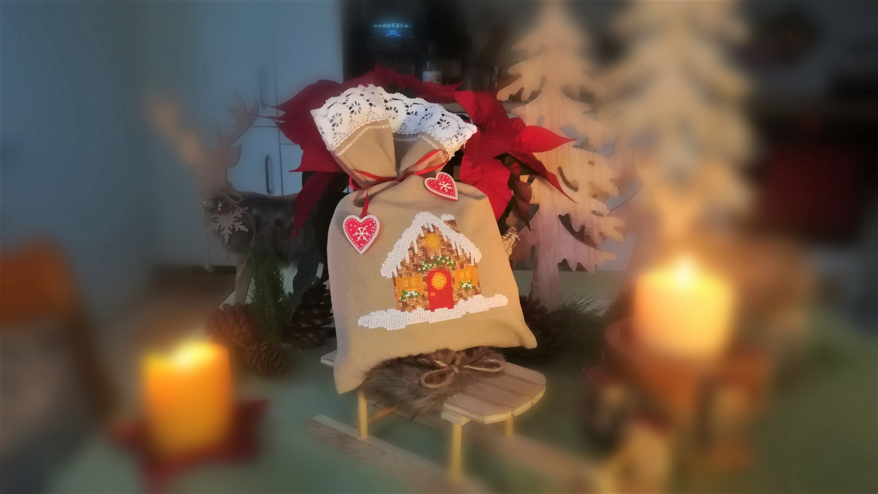 Es läßt der Schnee noch auf sich warten! Aber winterliche Atmosphäre habe ich schonmal gestickt. In Kreuzstich sieht das so schön aus!