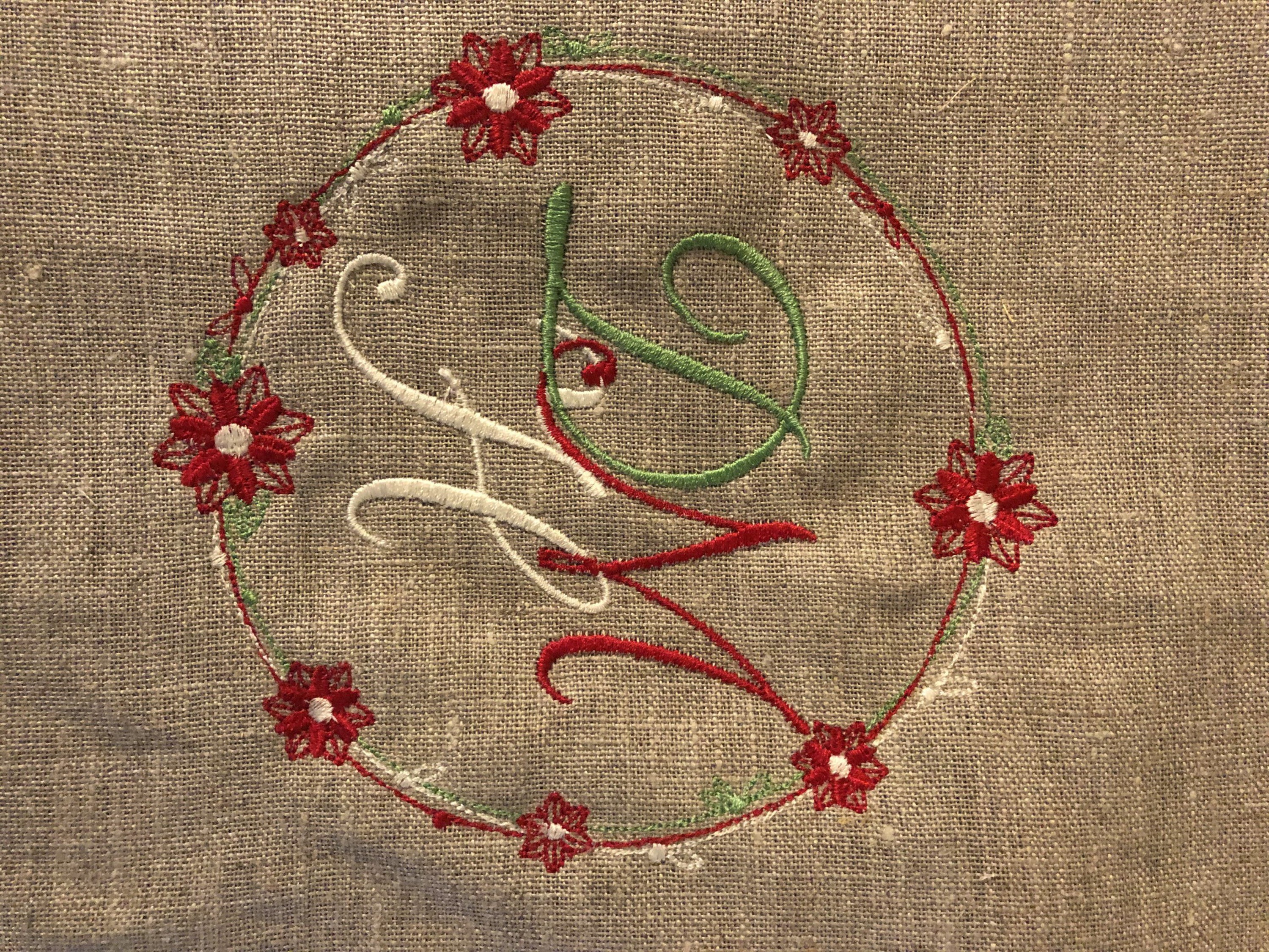 Set aus drei Leinen Geschirrtüchern zu Weihnachten bestickt