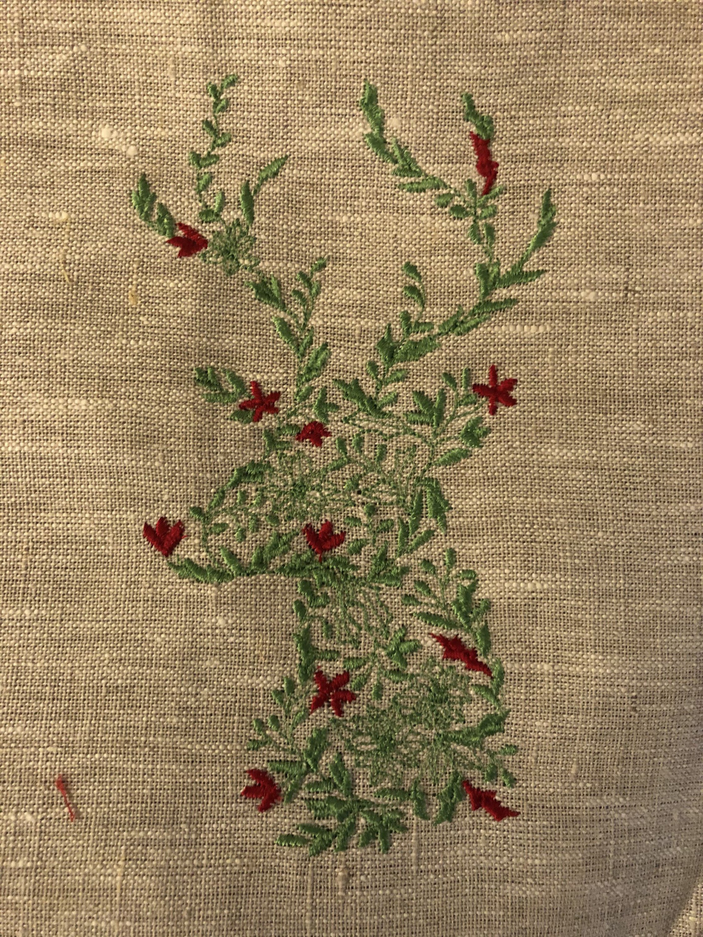 Set aus drei Leinen Geschirrtüchern zu Weihnachten bestickt