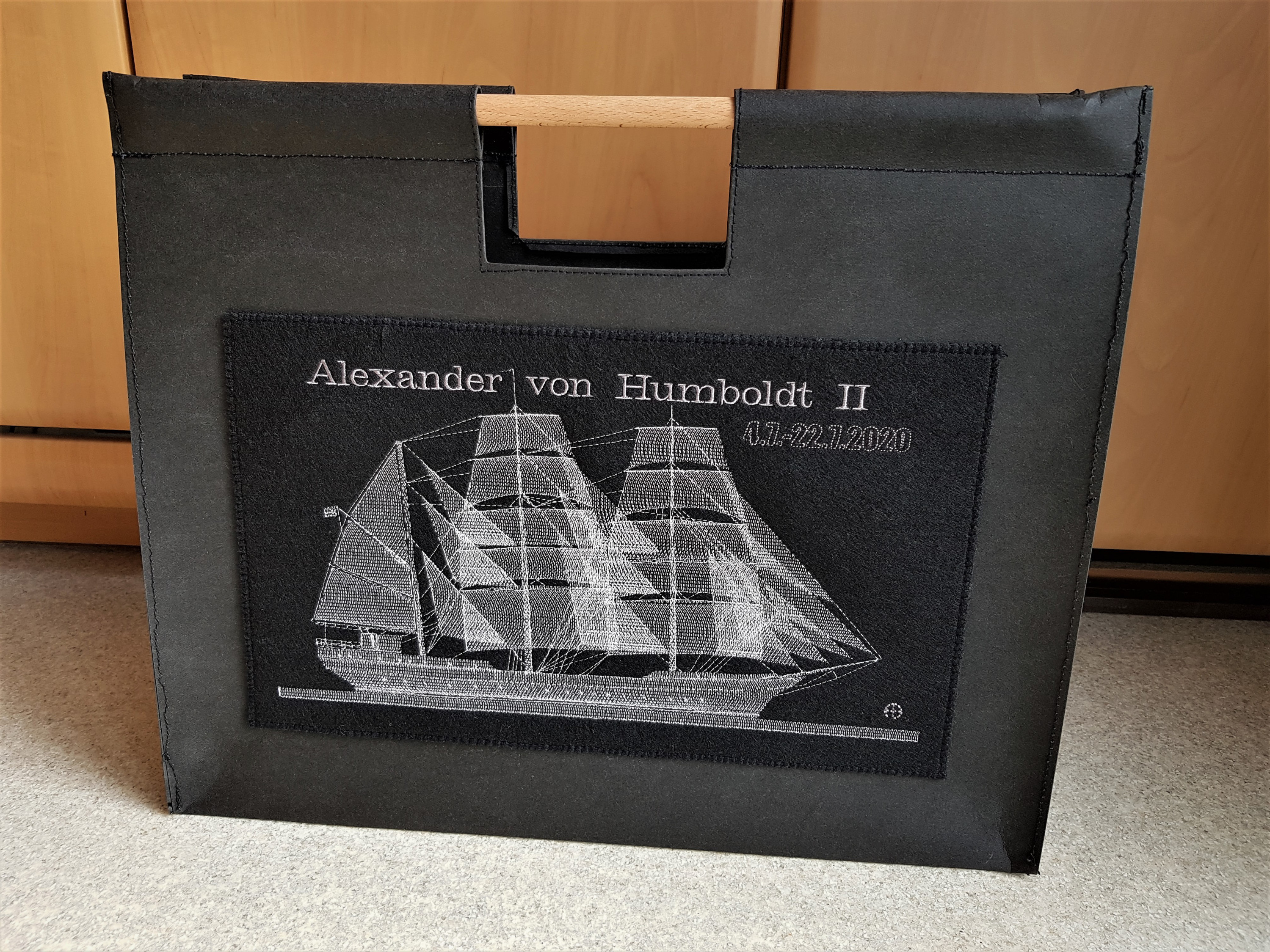 Als Geschenk für einen Freund der Familie zum 50. Geburtstag. Er will im Sommer als Mitglied der Crew auf der Alexander von Humboldt 2 für fast 3 Wochen auf große Reise gehen. Das große Segelschiff mit grünen Segeln ist aus Werbefilmen für Bier bekannt.