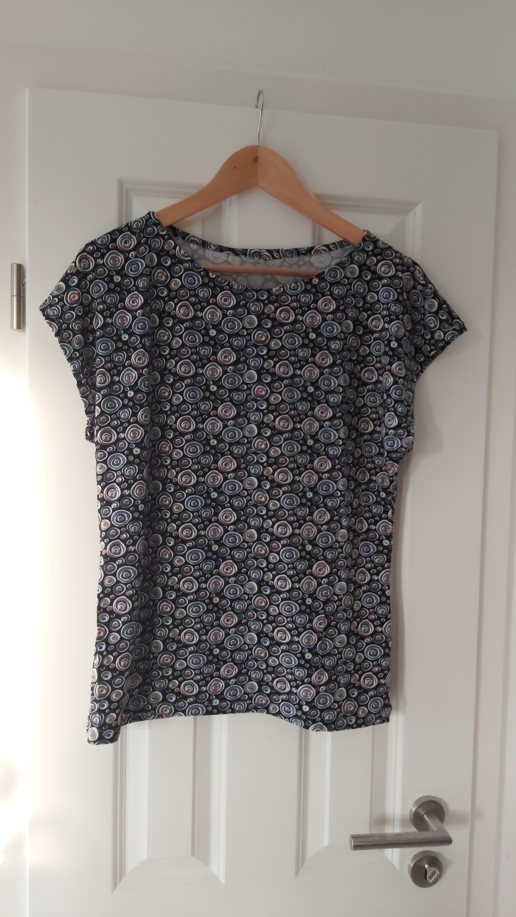 Ich sah im Geschäft den Stoff und sagte "Mama, das ist Deiner" sie erst noch unsicher. Meine Schwester stimmte mir zu. Nun hing gestern das Shirt so wie auf dem Bild, K1 kommt rein und sagt "sieht aus wie von Oma"