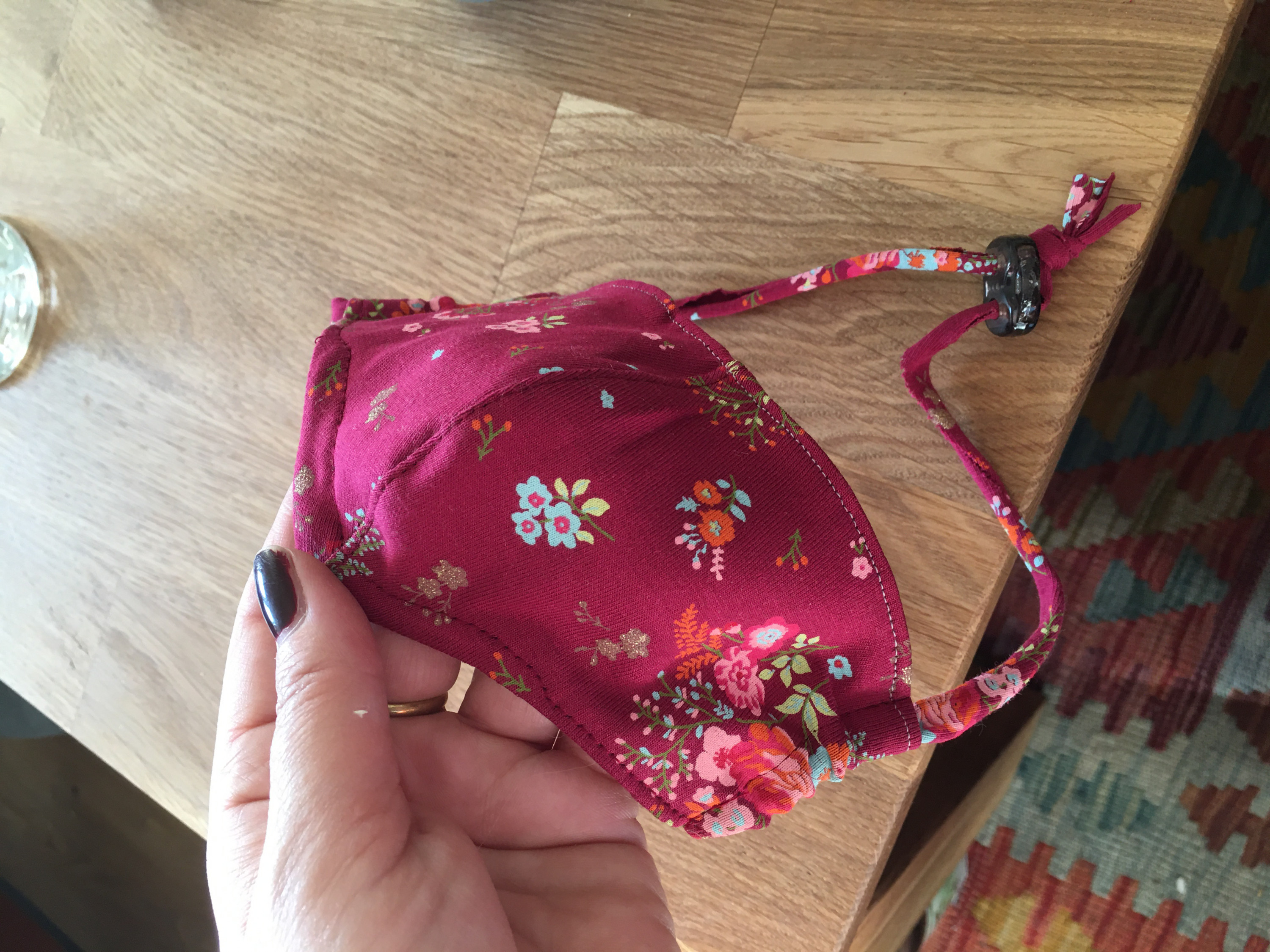 Kindermaske aus Jersey und Kordelstopperverschluss mit Jerseynudel.