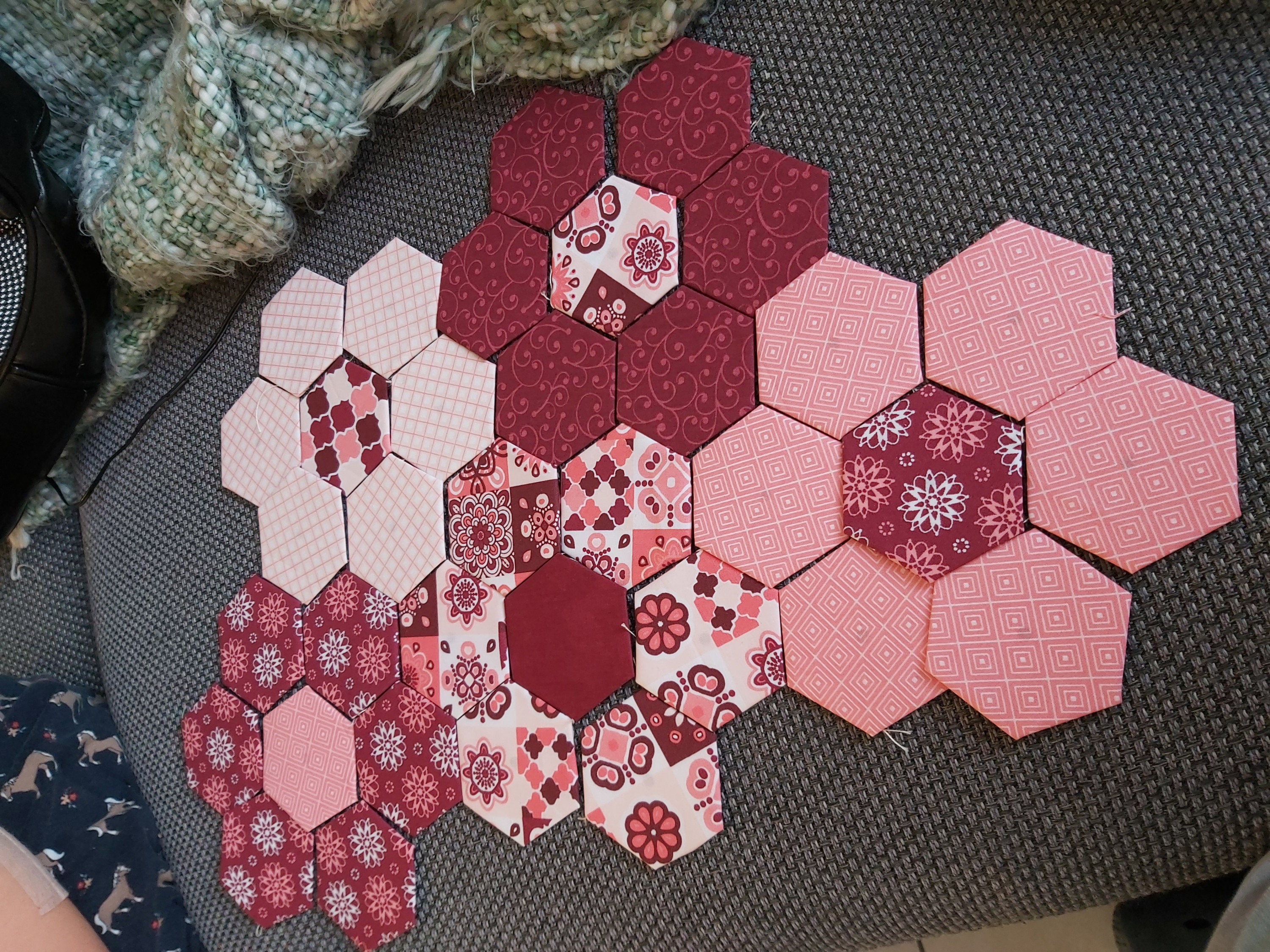 Ich brauche etwas für nebenbei auf der Couch, etwas Produktives, bei dem ich weder denken noch sonderlich aufpassen muss. Die Nähmaschine scheidet daher aus und ich liesel somit nebenbei etwas. Irgendwas in dieser Richtung, einfache Rosetten (auf den Fadenlauf habe ich oben beim Hinlegen für einen ersten optischen Eindruck nicht geachtet) wird es werden. Ich lasse mich mal treiben...