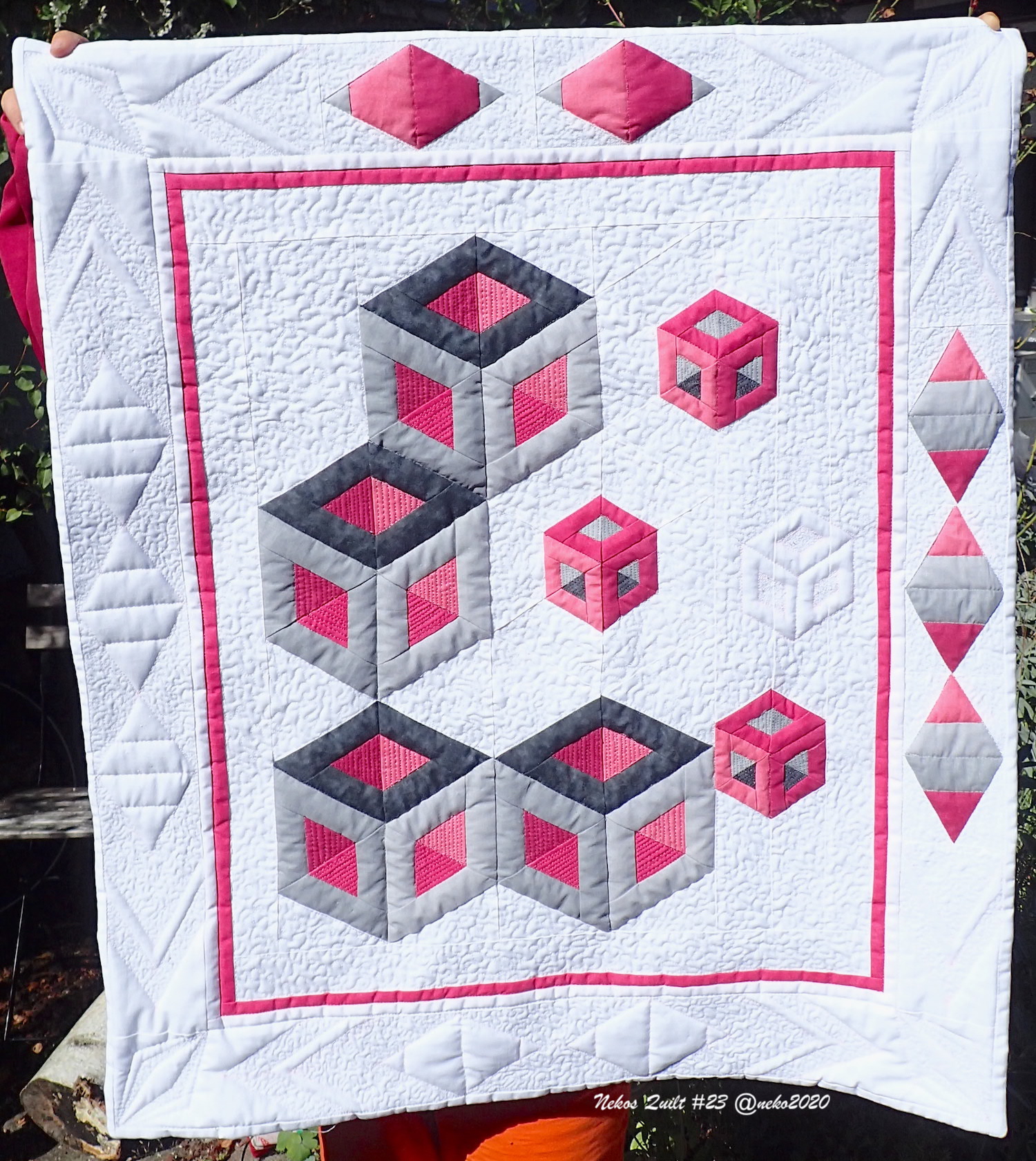 Würfelquilt nach einem Patchwork-Würfel-Kurs mit Heike Rosenbaum. Ich habe mich von ihrer Kursvorlage inspirieren lassen und bin in Teilen sehr nah dran geblieben.