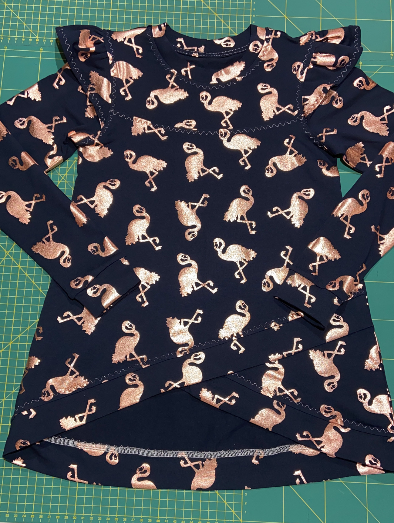 Schnittmuster „Lieschen“ von A.J.sInspired in Größe 134. Ich sehe gerade erst, dass ich da vergessen habe, die Overlockgarne zu wechseln