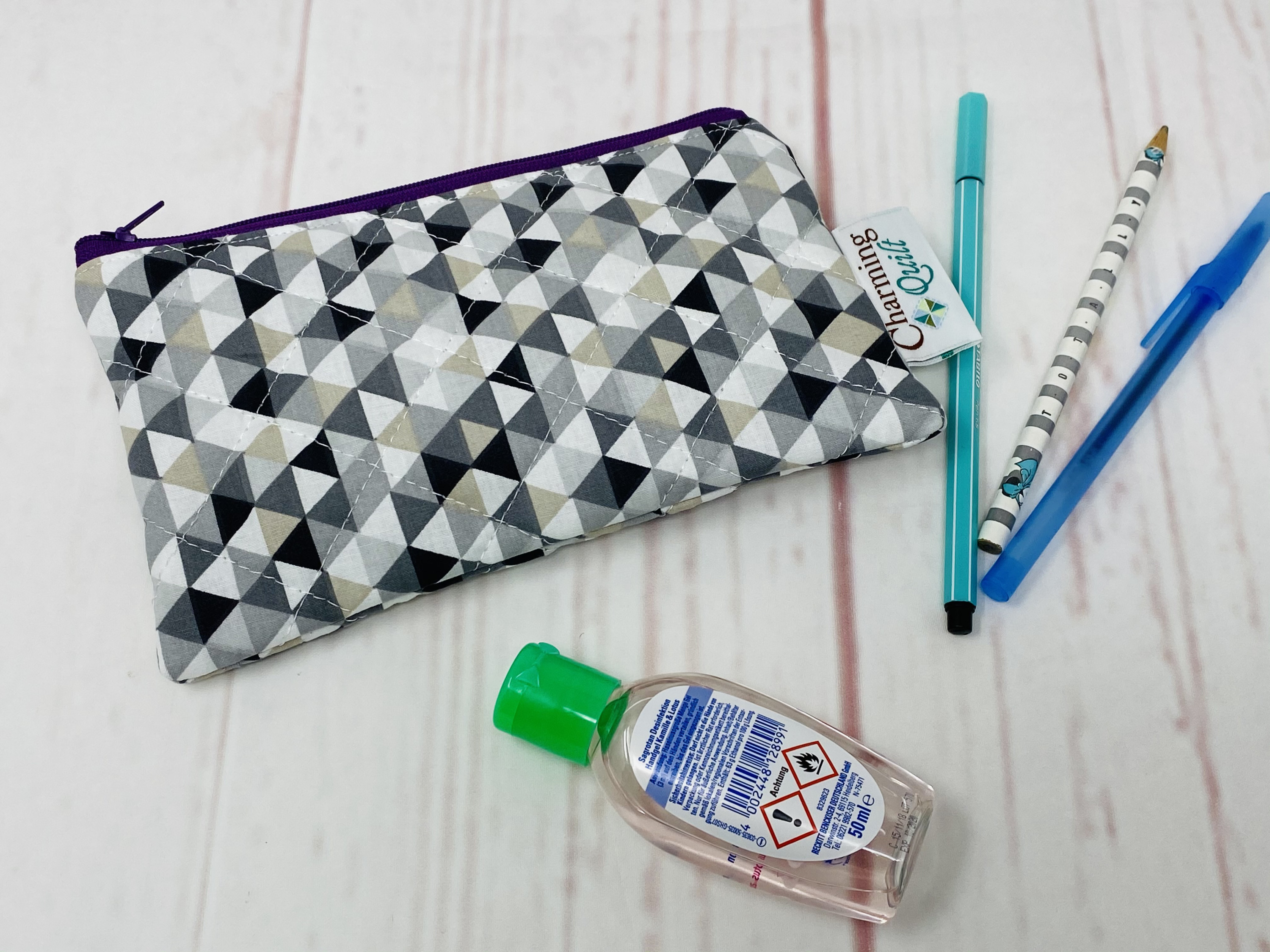 Ganz einfach, kein Schnitt - nur geschaut, dass es lang genug für die Stabilo Filzer ist, aber der Reißverschluss noch passt