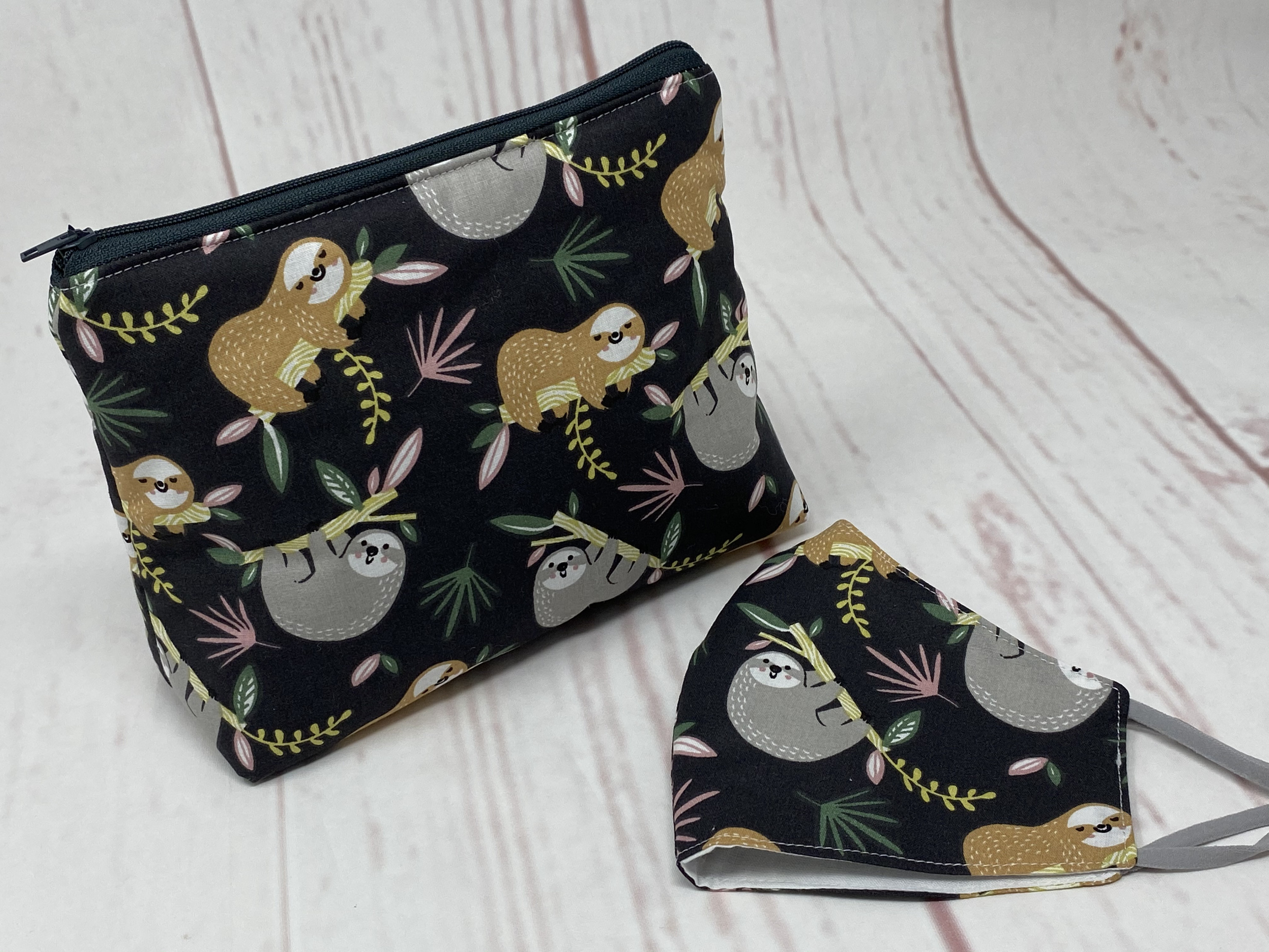 die Schwiegertochter ist schon angefixt mit genähten Sachen. Vor einiger Zeit habe ich ihr eine Mini Apotheke mit Faultieren genäht. Sie liebt die Faultiere und die Mini Apo war auch ein Volltreffer, da sie gleich Masken und Desinfektionsmittel verpackt hat. Sie ist Krankenschwester.