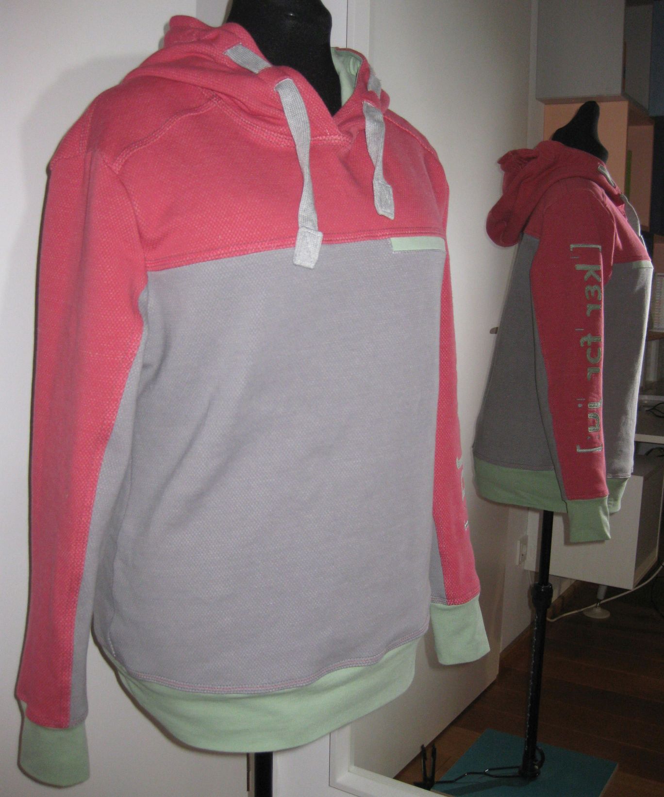 Für mich habe ich den Schnitt etwas abgeändert: keine Außentasche am Ärmel (dafür eben die Applikation) und keine Brusttasche.