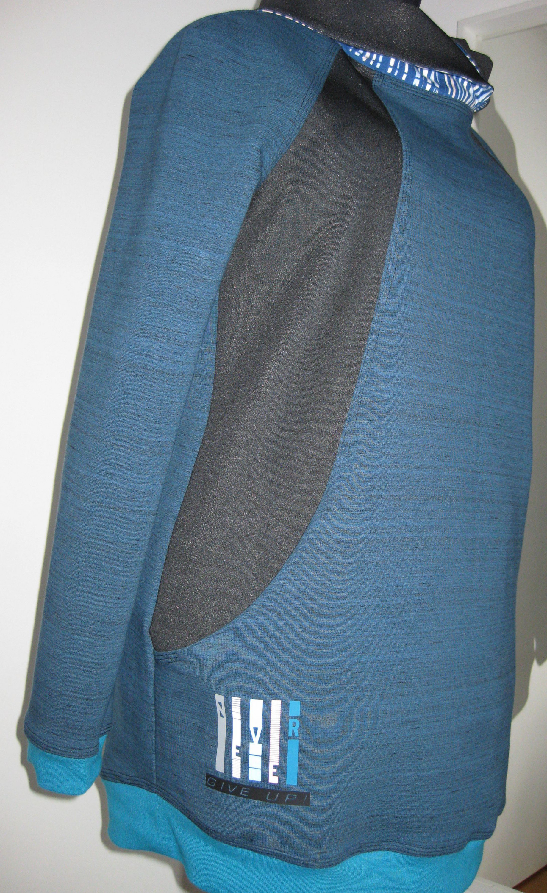 Die Plotterdatei habe ich bei etsy von BlueBCH gekauft. Ich fand es to toll, dass ich hier die Farben aus dem unteren Jerseystoff am Kragen sowie die Bündchenfarbe wieder aufnehmen konnte.