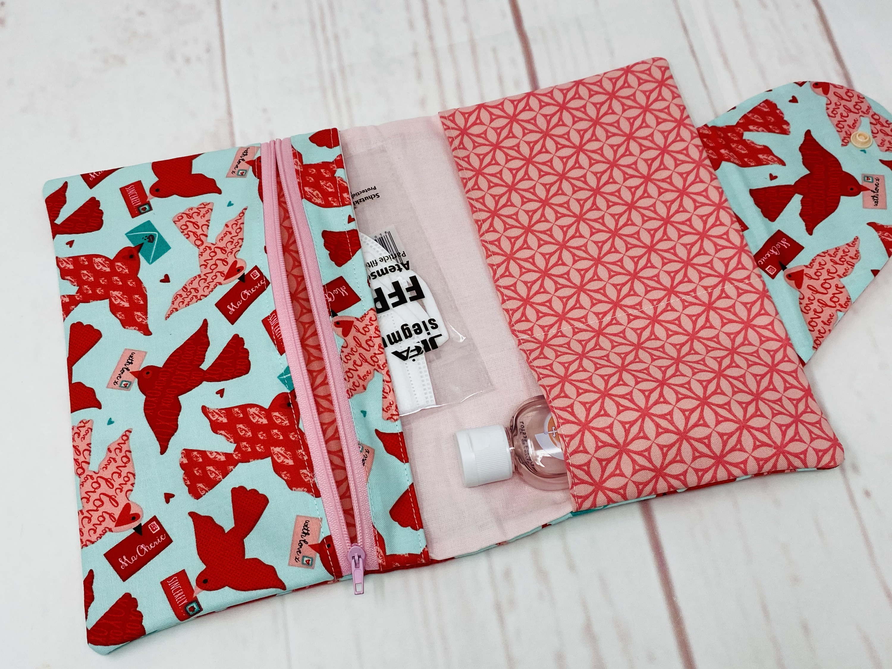 hier kam gleich der nächste Wunsch: eine Tasche für Masken, Feuchttücher, Desinfektionsmittel und Handschuhe - alles dabei, alles sicher verstaut und hübsch noch dazu.