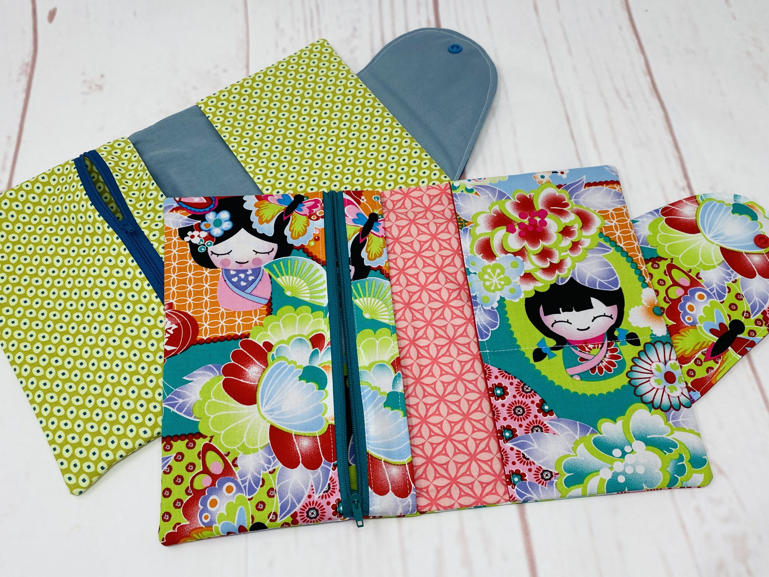 so, die beiden Masken Organizer für meine Freundin und ihre Tochter sind fertig. Die eine mag es eher dezent (die Mama) und hat sich einen Amy Butler Stoff ausgesucht. Die Tochter mags gern farbenfroh (für sie war auch der Frida Kahlo Quilt) und da kamen die Kokeshis genau richtig.