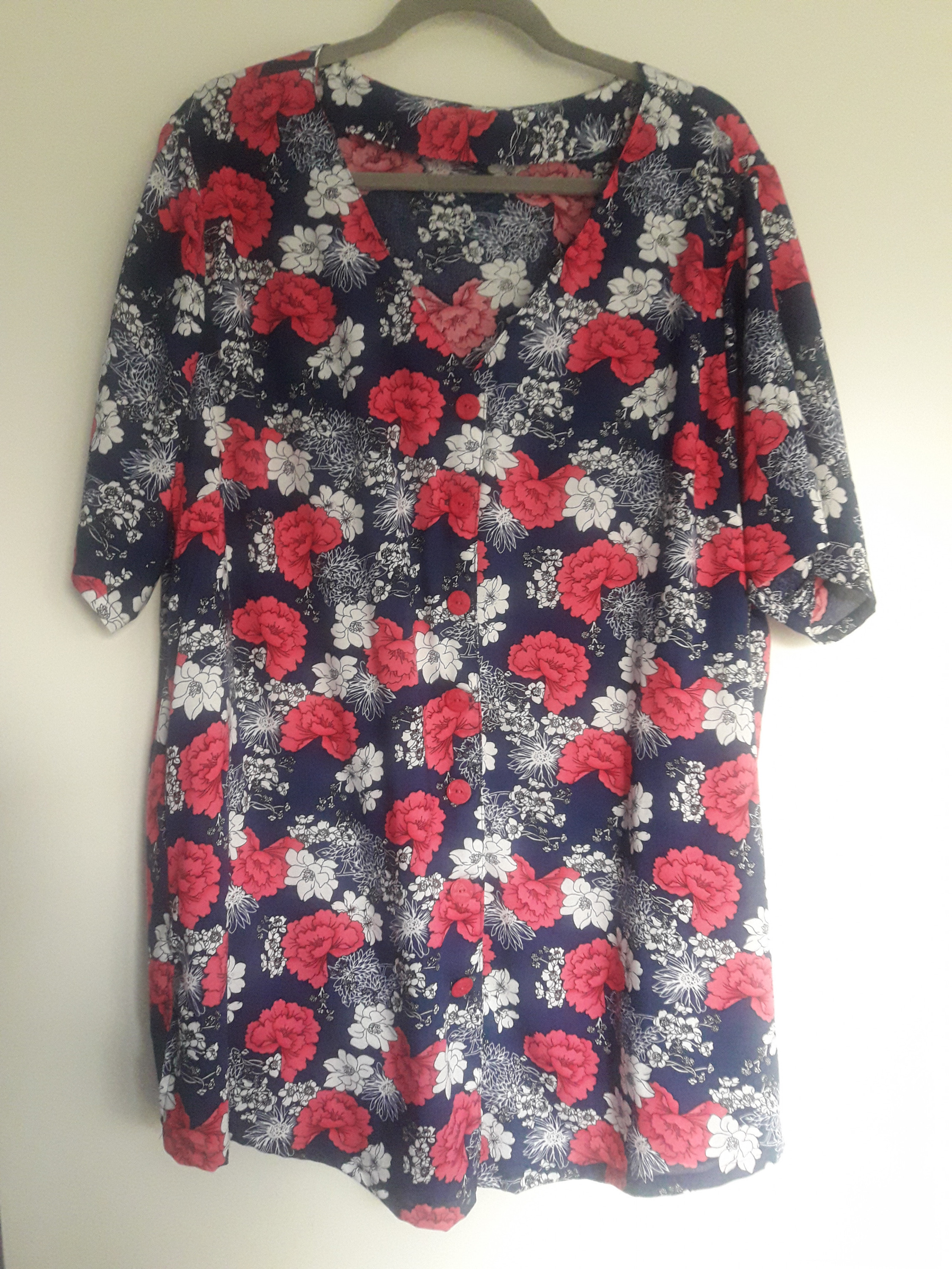Bluse 125 aus 02/2020 in Größe 48 mit einigen Änderungen, ich habe aus dem runden einen V-Ausschnitt gemacht und den Ärmel gekürzt.