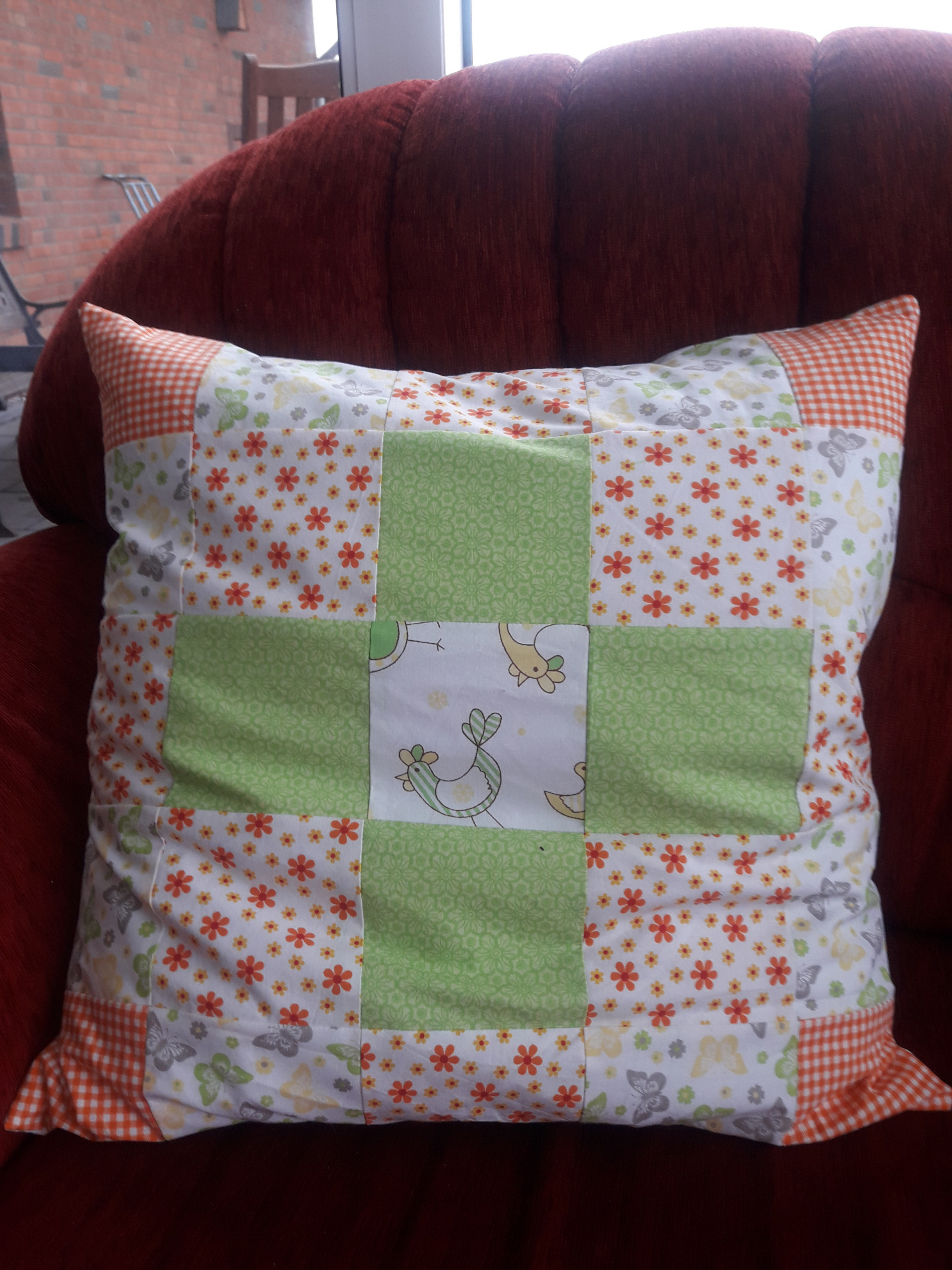 Und noch eins, diesmal in Patchwork, um Reste zu verbrauchen, ebenfalls 50x50 cm