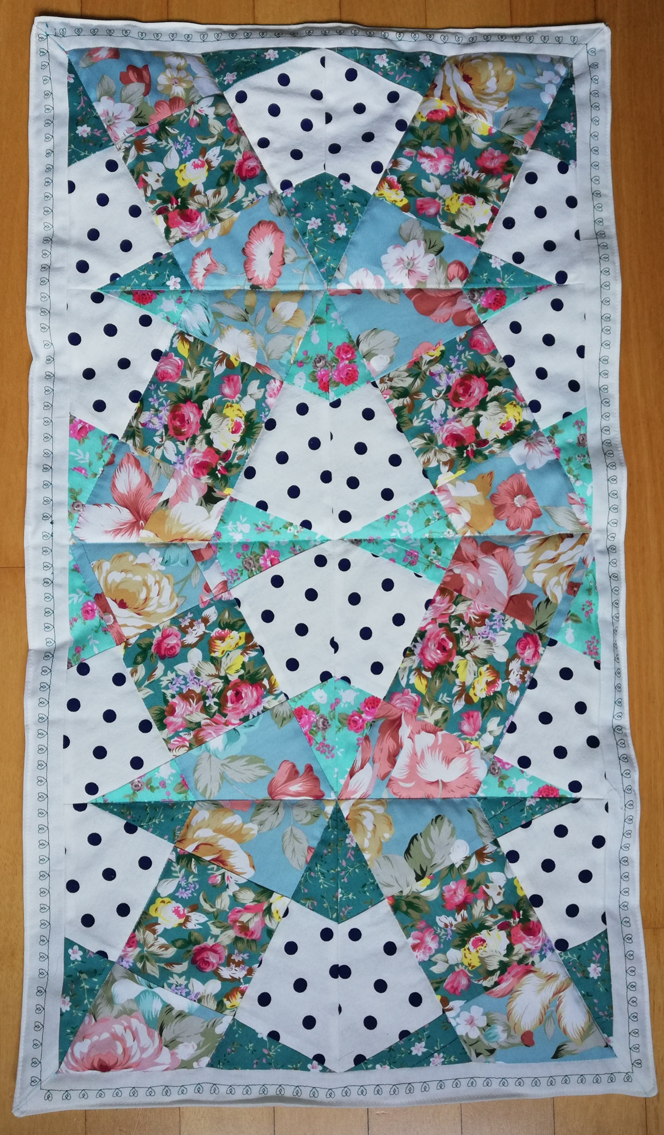 Diesen Tischläufer habe ich mit einer YouTube Anleitung gemacht. Leider sehr viel Verschnitt!
