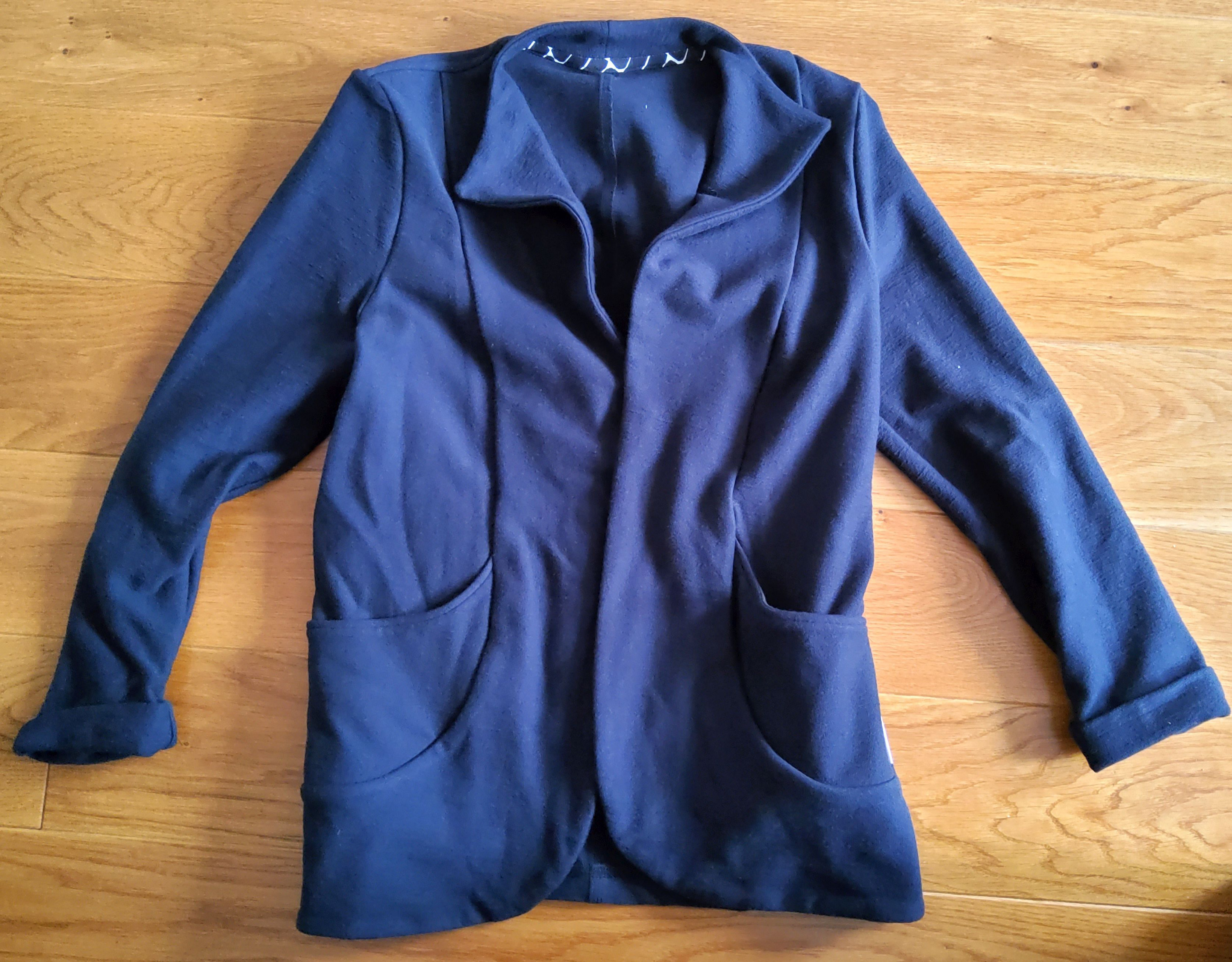 Der Blazer (Schnittmuster LilleMag 02; Molon) ist aus Jaquardsweat genau richtig. Er trägt sich sehr angenehm, aufgrund des dehnbaren Materials. Mit einer Bluse darunter sieht es top aus, ist aber nicht zu übertrieben schick für den Anlass.