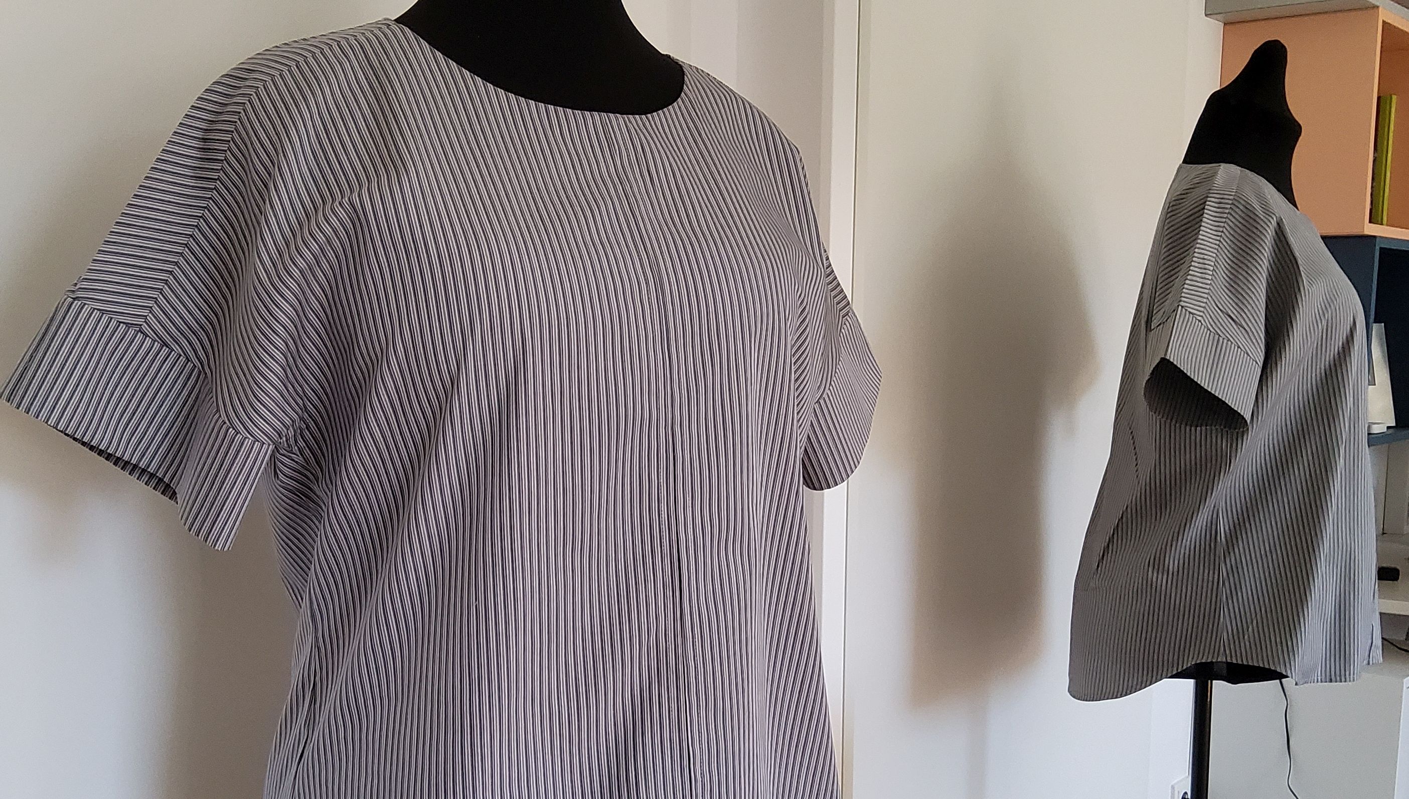 Den Schnitt habe ich etwas angepasst: Im Brustbereich die Größe S gewählt (auch eine ganz neue Erfahrung für mich