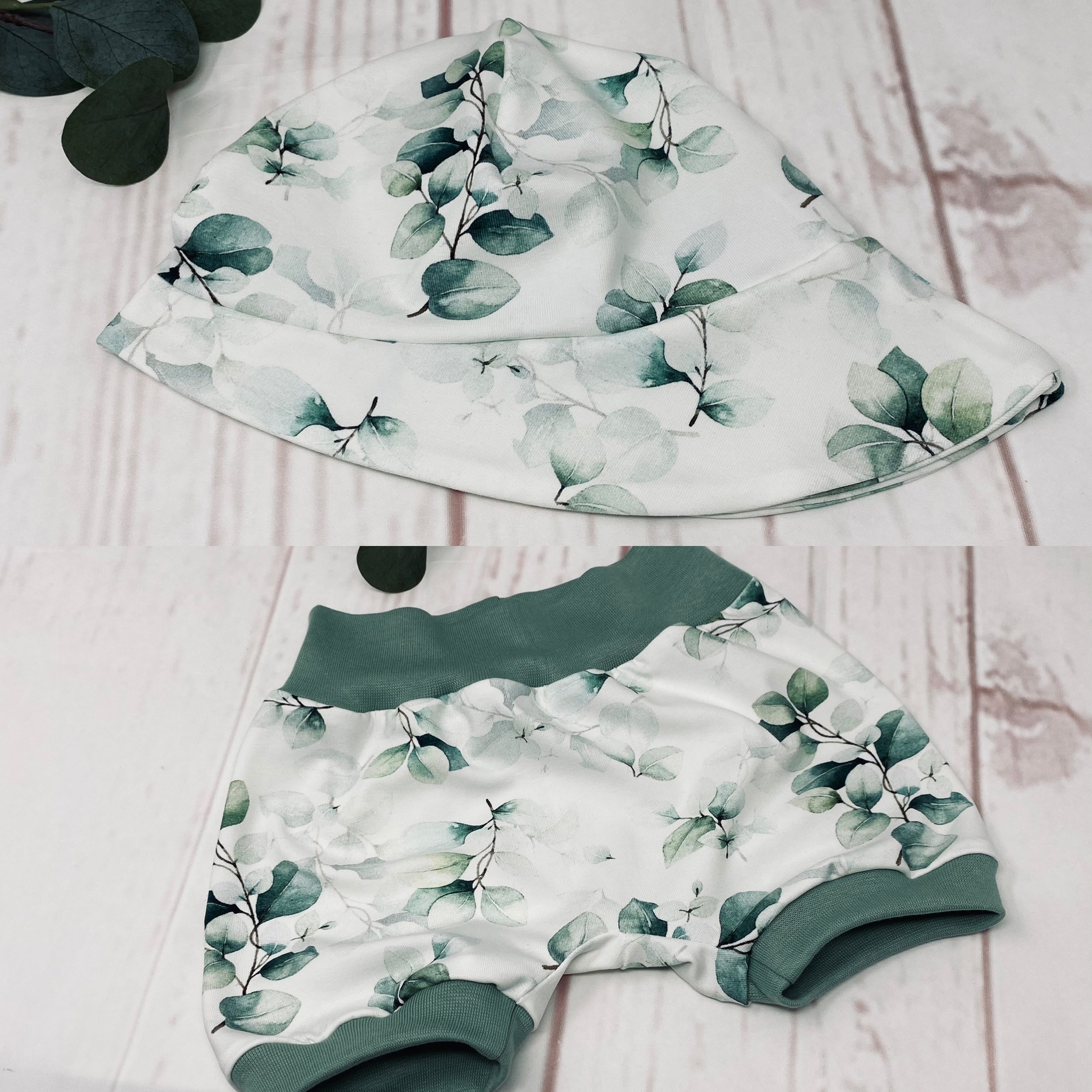 Dazu eine kurze Pumphose nach dem Freebook von Lybstes in Größe 74. Die Bündchen sind wieder aus diesem schönen salbeifarbenen Bündchen, ich finde das passt einfach perfekt zu den Aquarelltönen.
