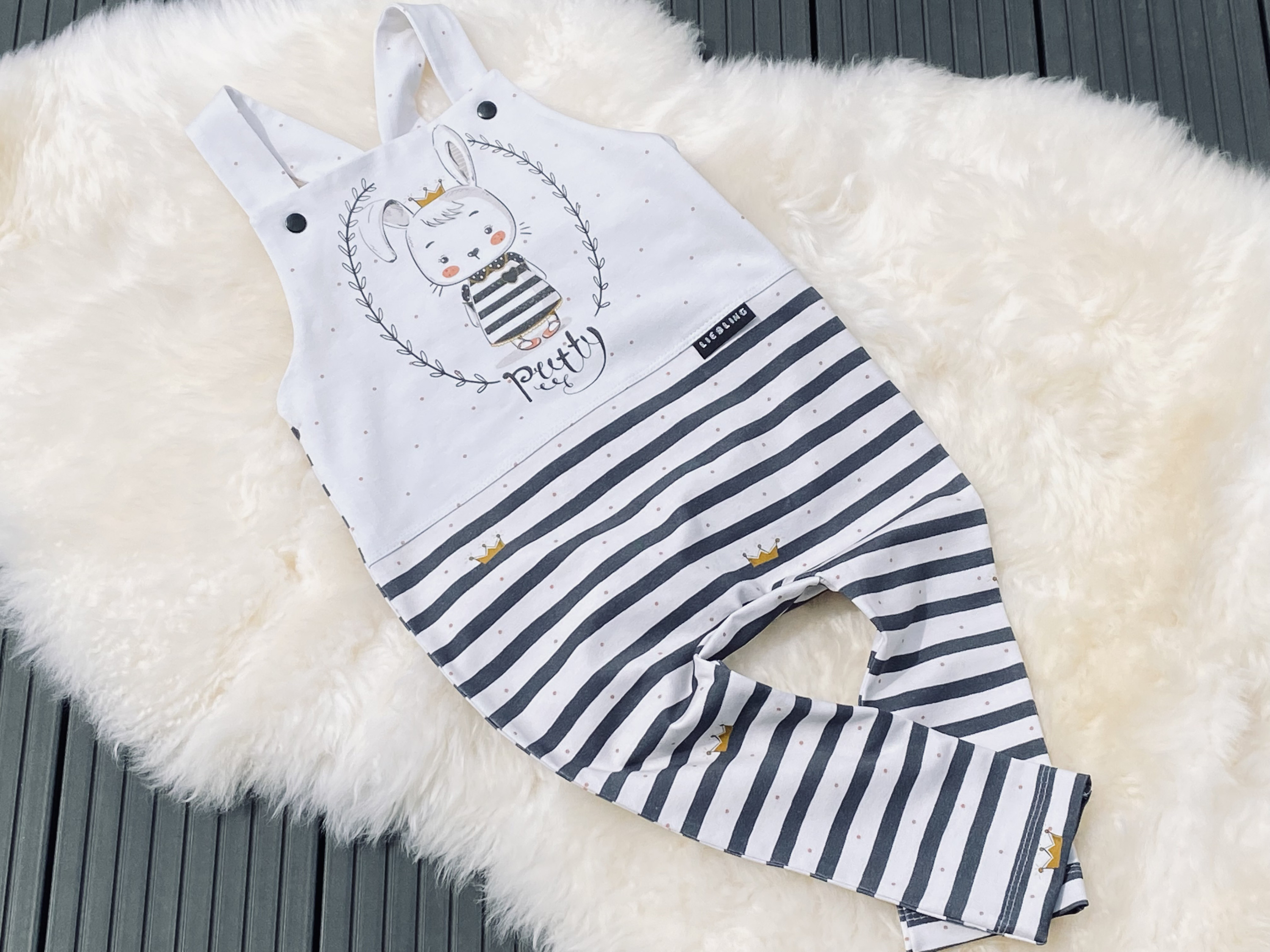 hier habe ich eine Latzhose nach dem Schnitt von Kid5 für euch. Genäht in Größe 92 ohne Änderungen bis auf die Unterteilung des Vorderteils, weil das Panel vernäht werden sollte.
