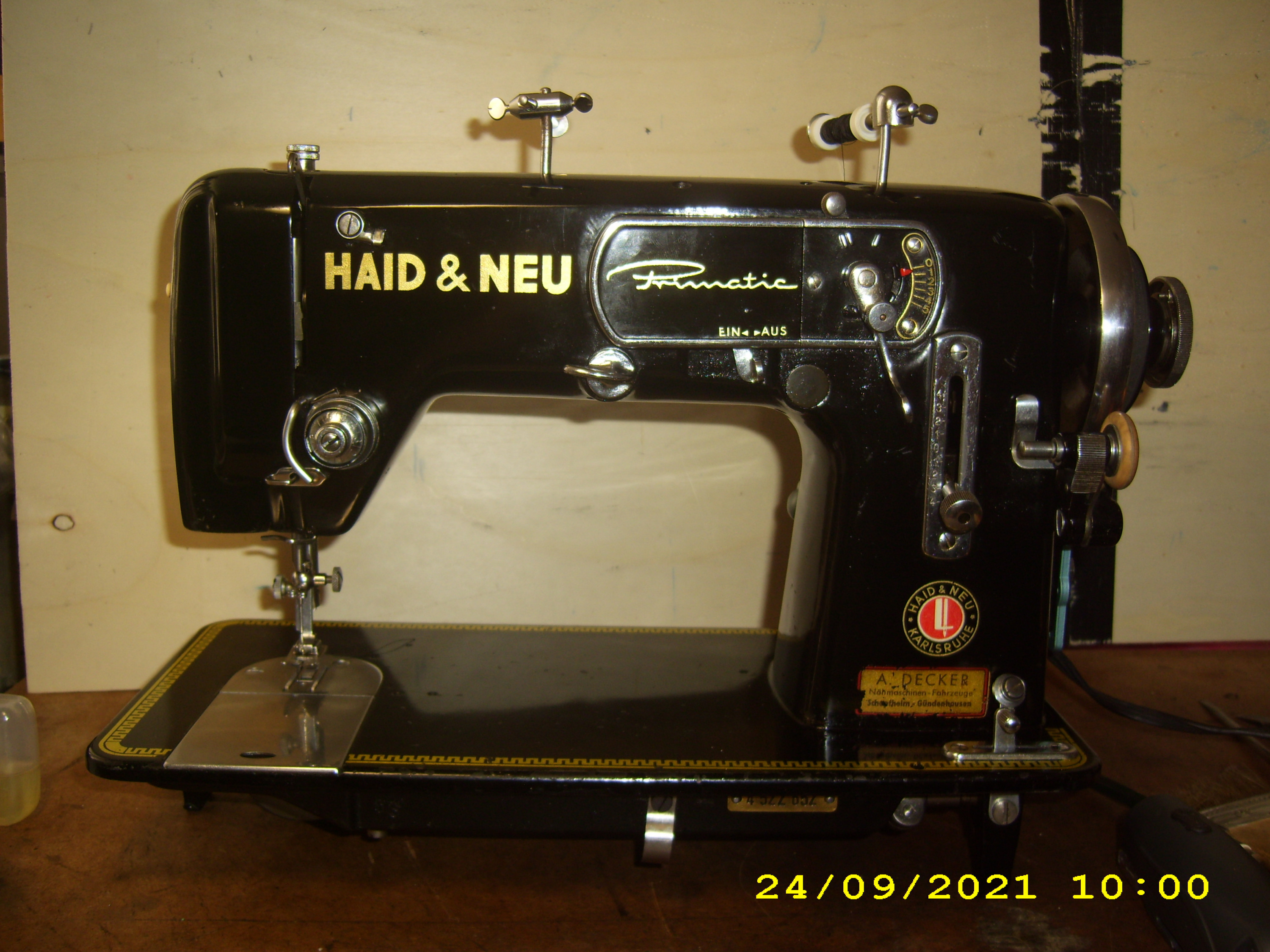 Hier sehen sie eine schablonengesteuerte Automatik-Haushaltsnähmaschine aus dem Hause Haid & Neu Primatic.