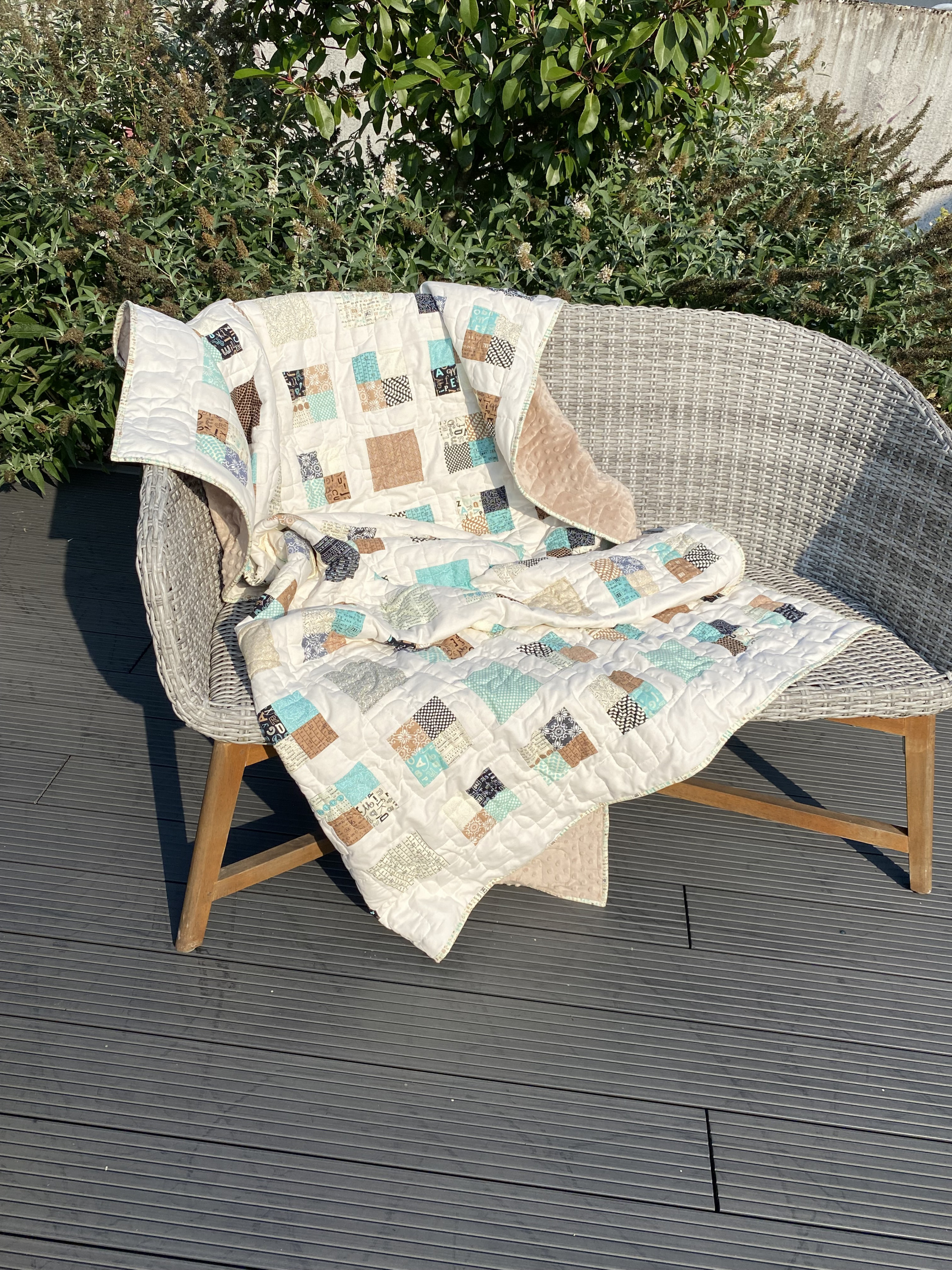 der Herrenquilt ist fertig und in der Herbstsonne zum Fotoshooting angetreten