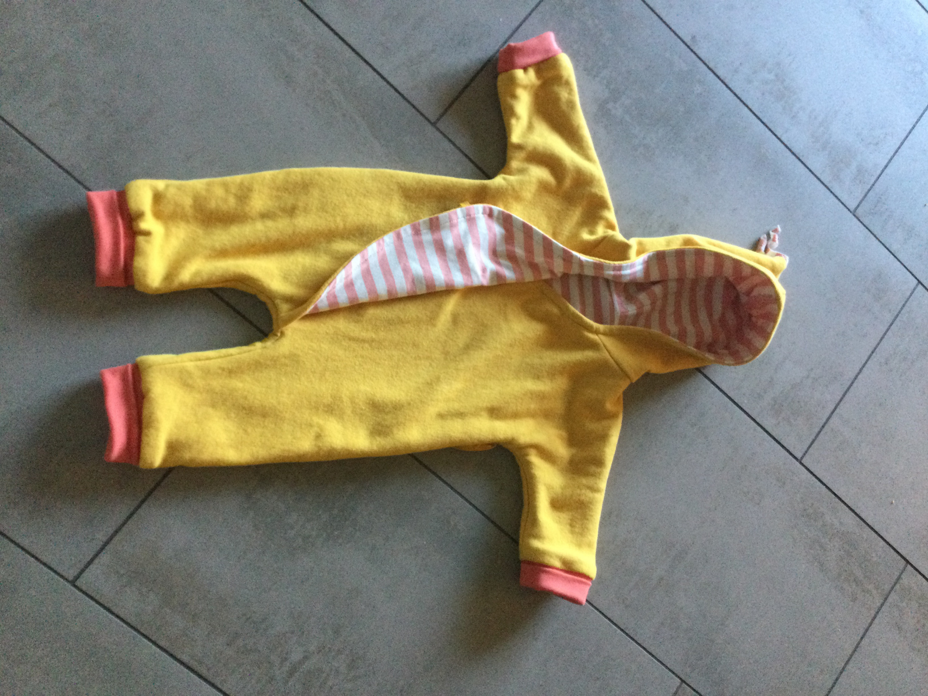 Danke! Ich glaub, ich hab auch noch nie irgendwas richtig buntes genäht. Eigentlich sind mir die rosa Bündchen schon zu viel. Aber die Tochter, die den Anzug verschenken möchte, hat es sich so ausgesucht.