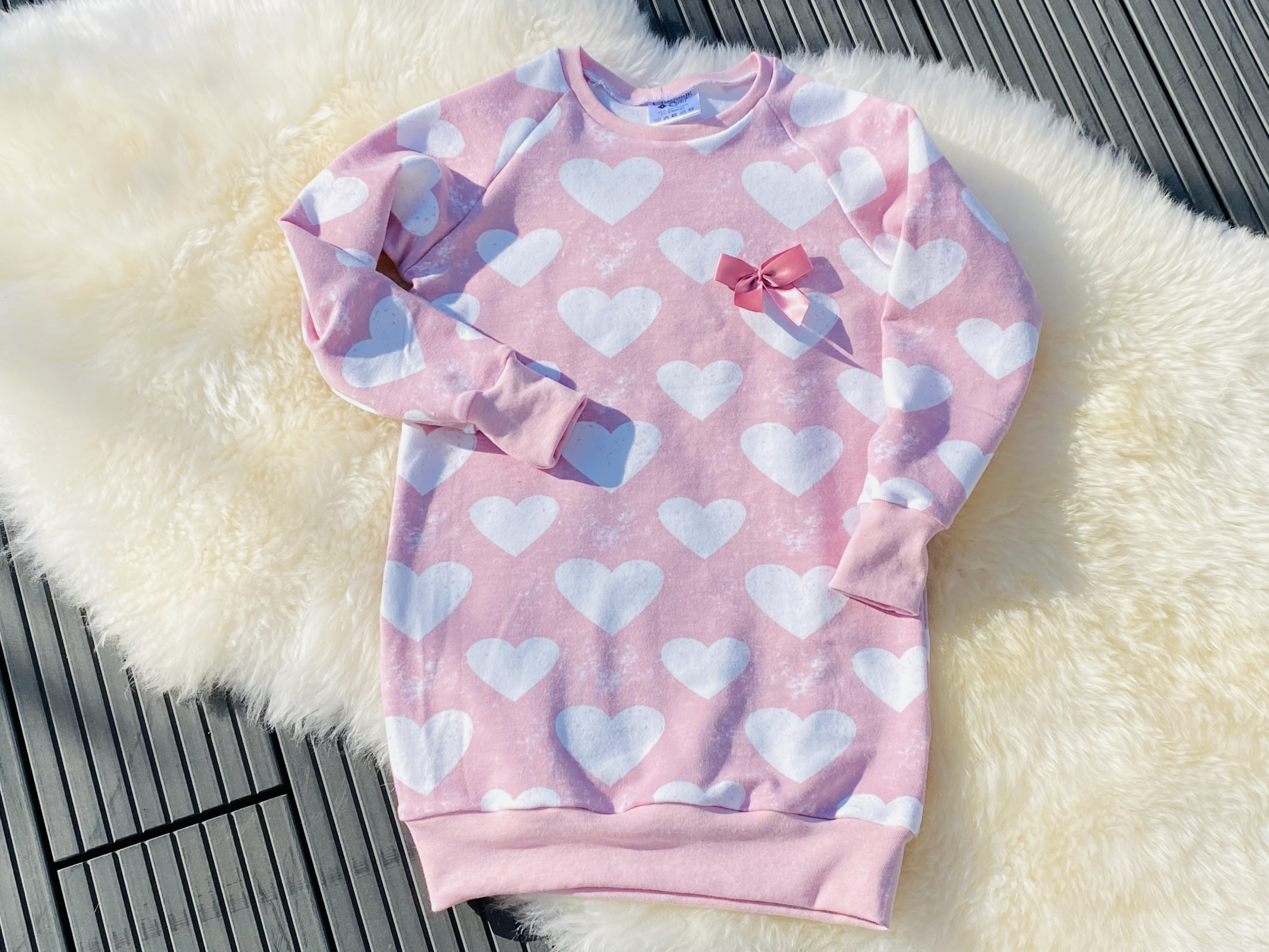 das Herzen Kleidchen ist fertig. Noch eine Schleife drauf - perfekt.