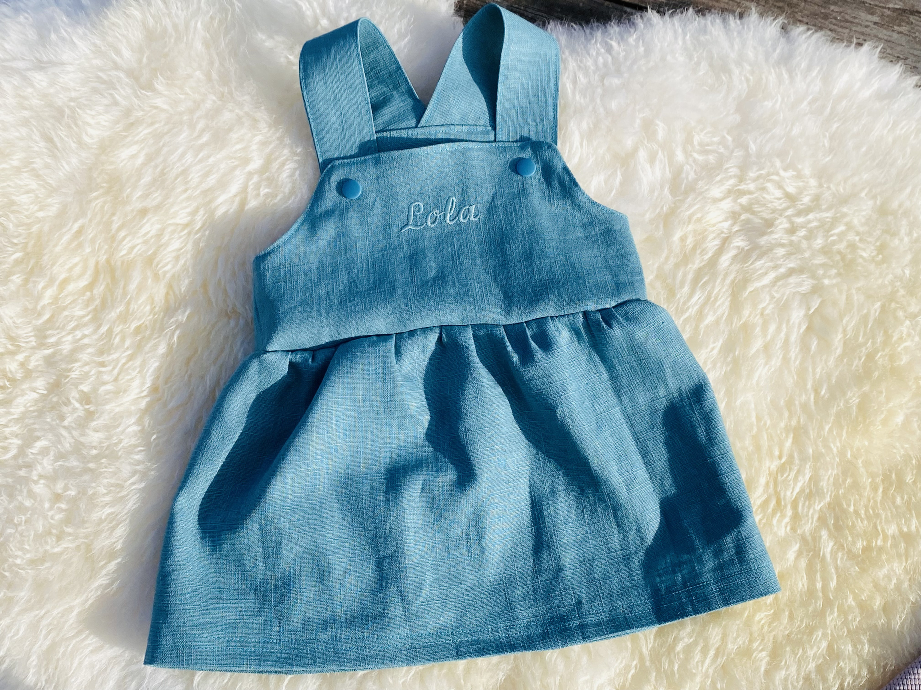 hier das Latzkleidchen in Gr 68 nochmal einzeln: der Schnitt ist Happy Latz von Schleiferlwerk (mit Lizenz).