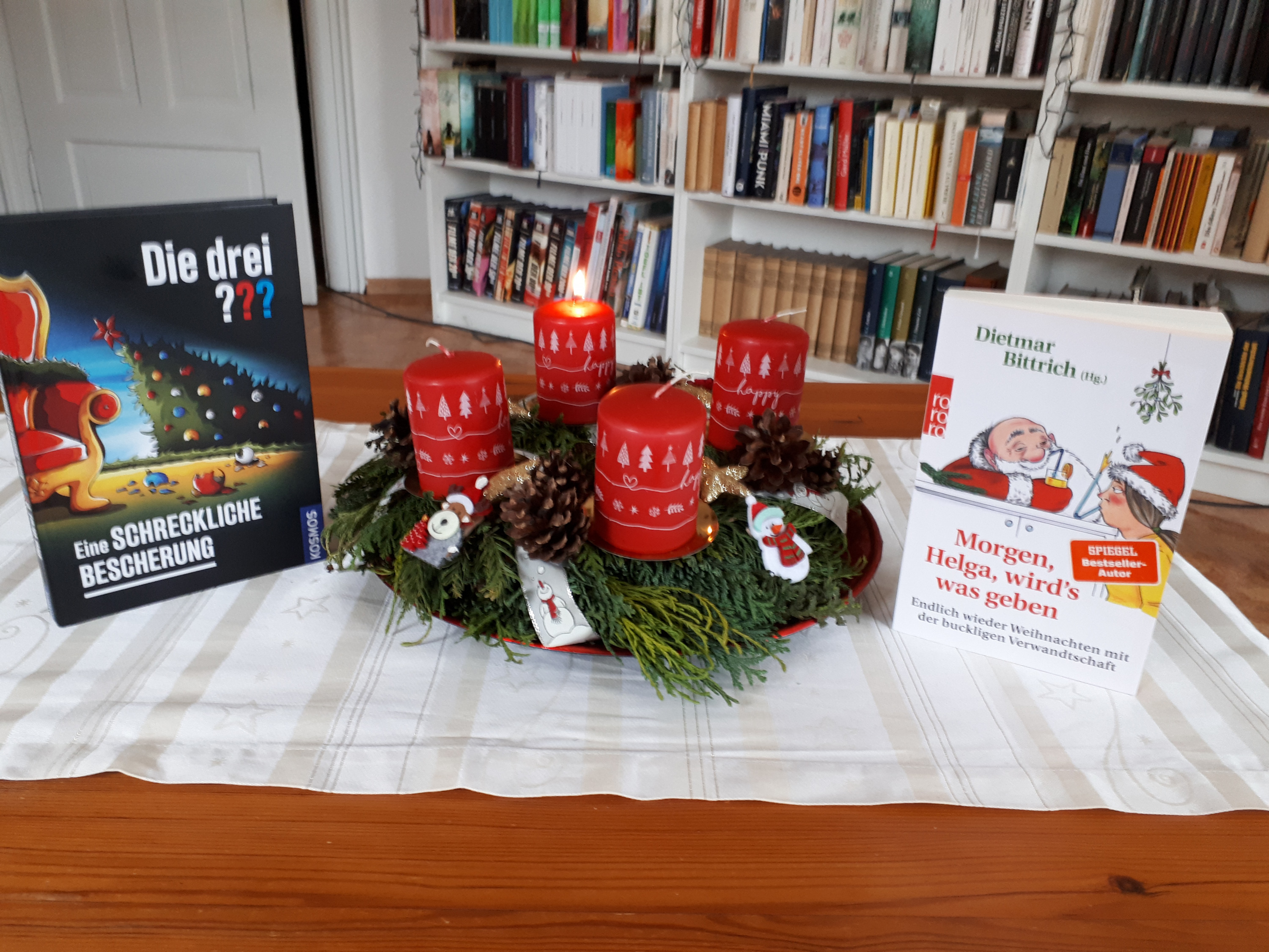Wie schön, das gefällt mir, der Adventskranz ist besonders hübsch.