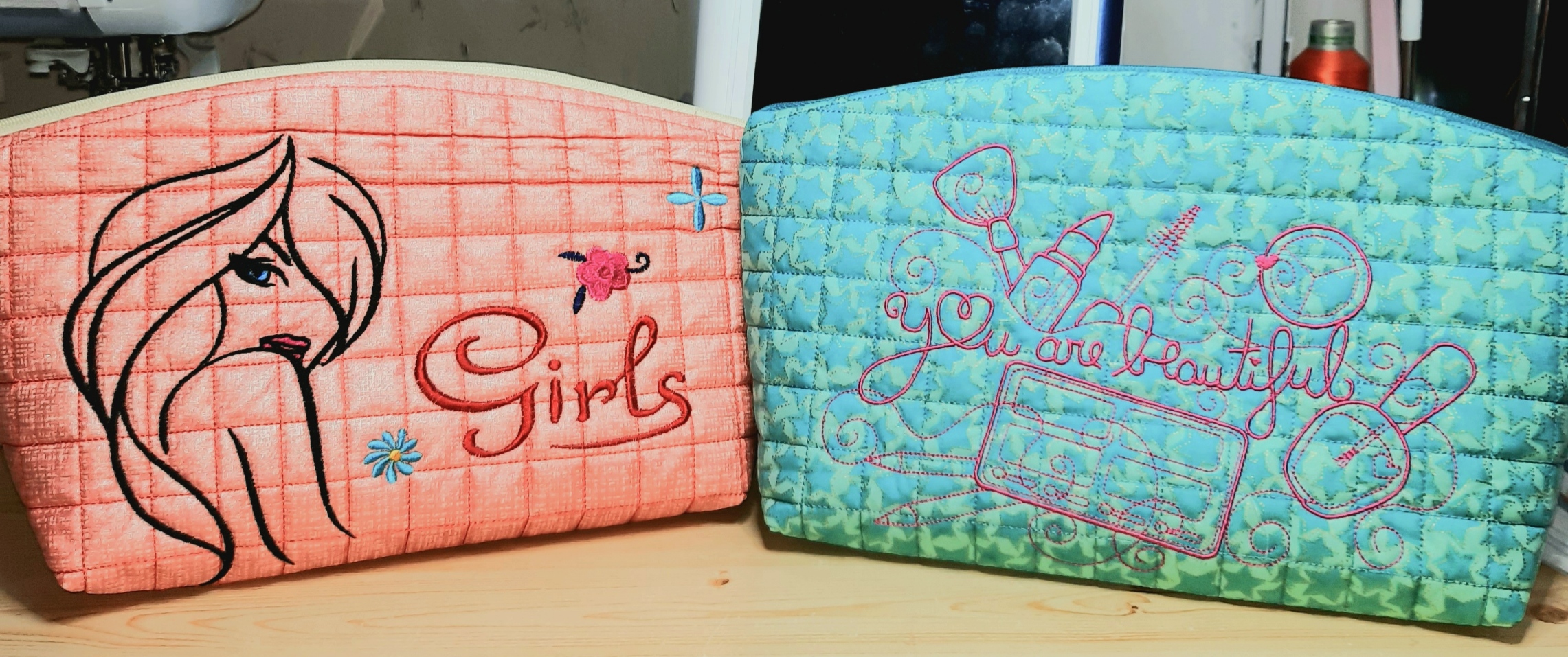 Also schnell zwei grössere Waschtaschen gestickt und genäht. Sie sind auch aus glänzenden Stoff was man auf dem Foto nicht so sieht.