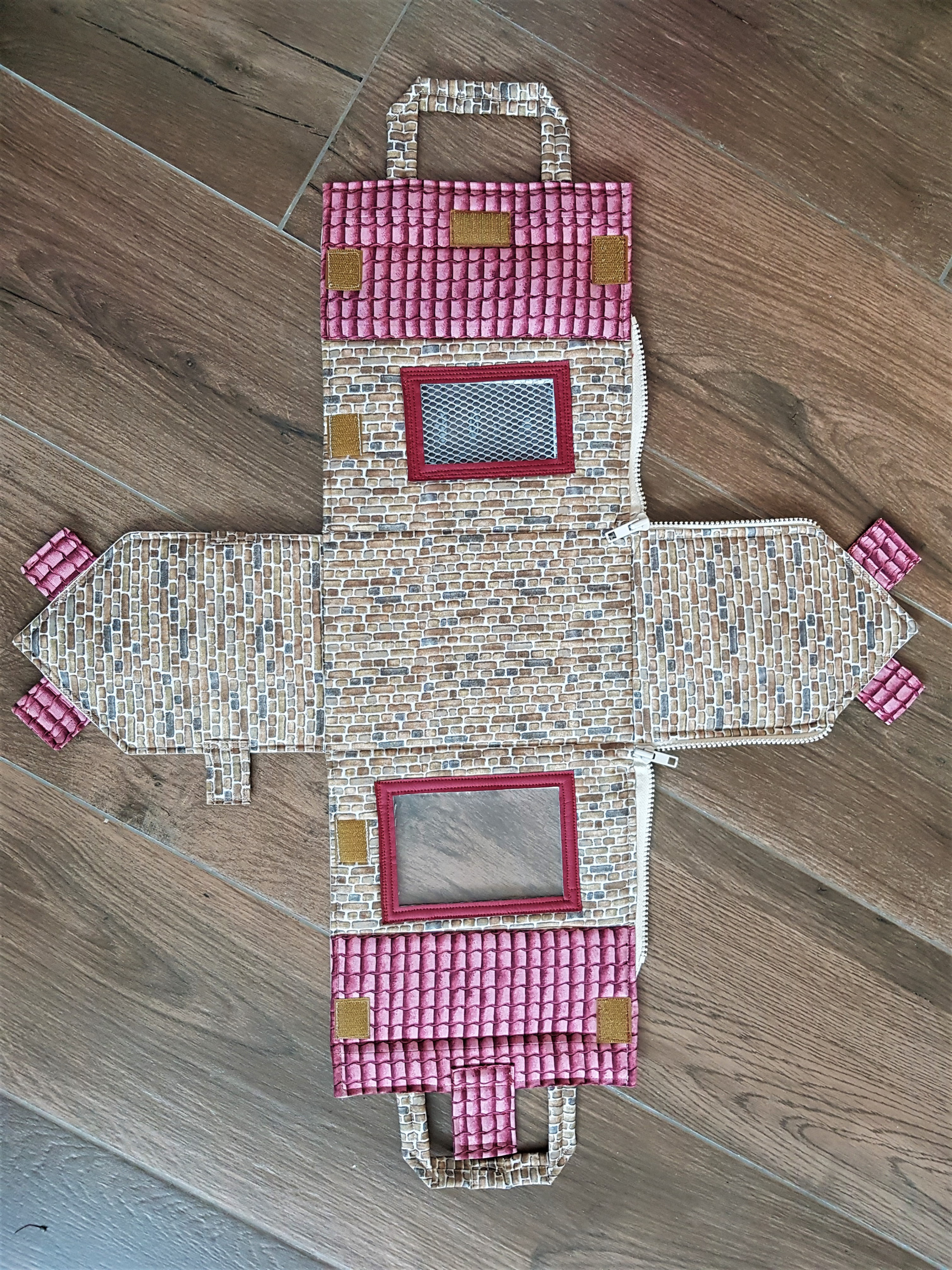 In Abwandlung der alten Anleitung von "Made by Marzipan" für ein kleines Spielhaus zum Mitnehmen habe ich einen tragbaren Hühnerstall genäht.