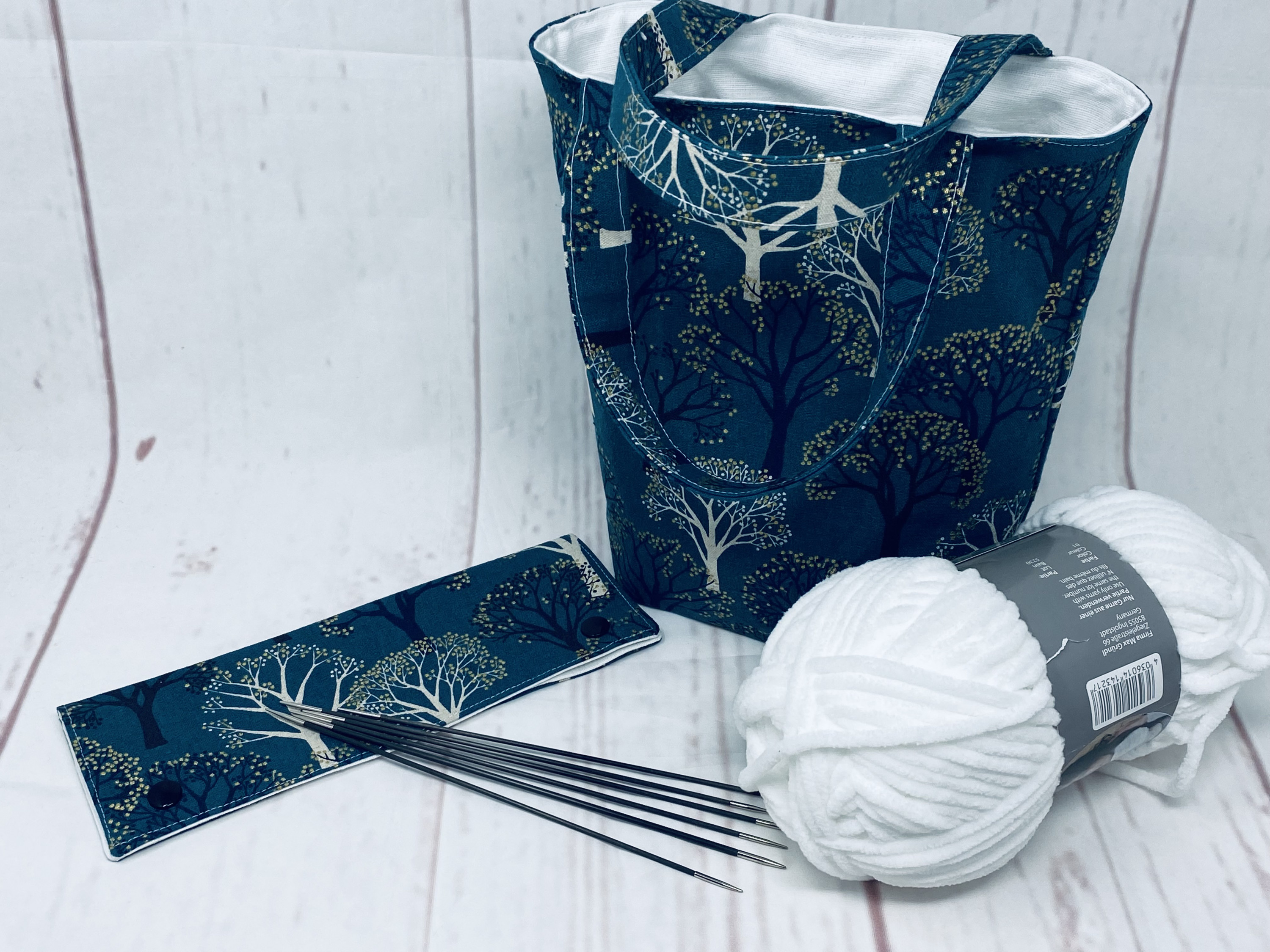hier also meine Version der Projekttasche für Strickzeug: aus dem tollen japanischen Stoff, innen weiß gefüttert und mit Einlage verstärkt. Mit Henkeln zum Tragen für unterwegs.
