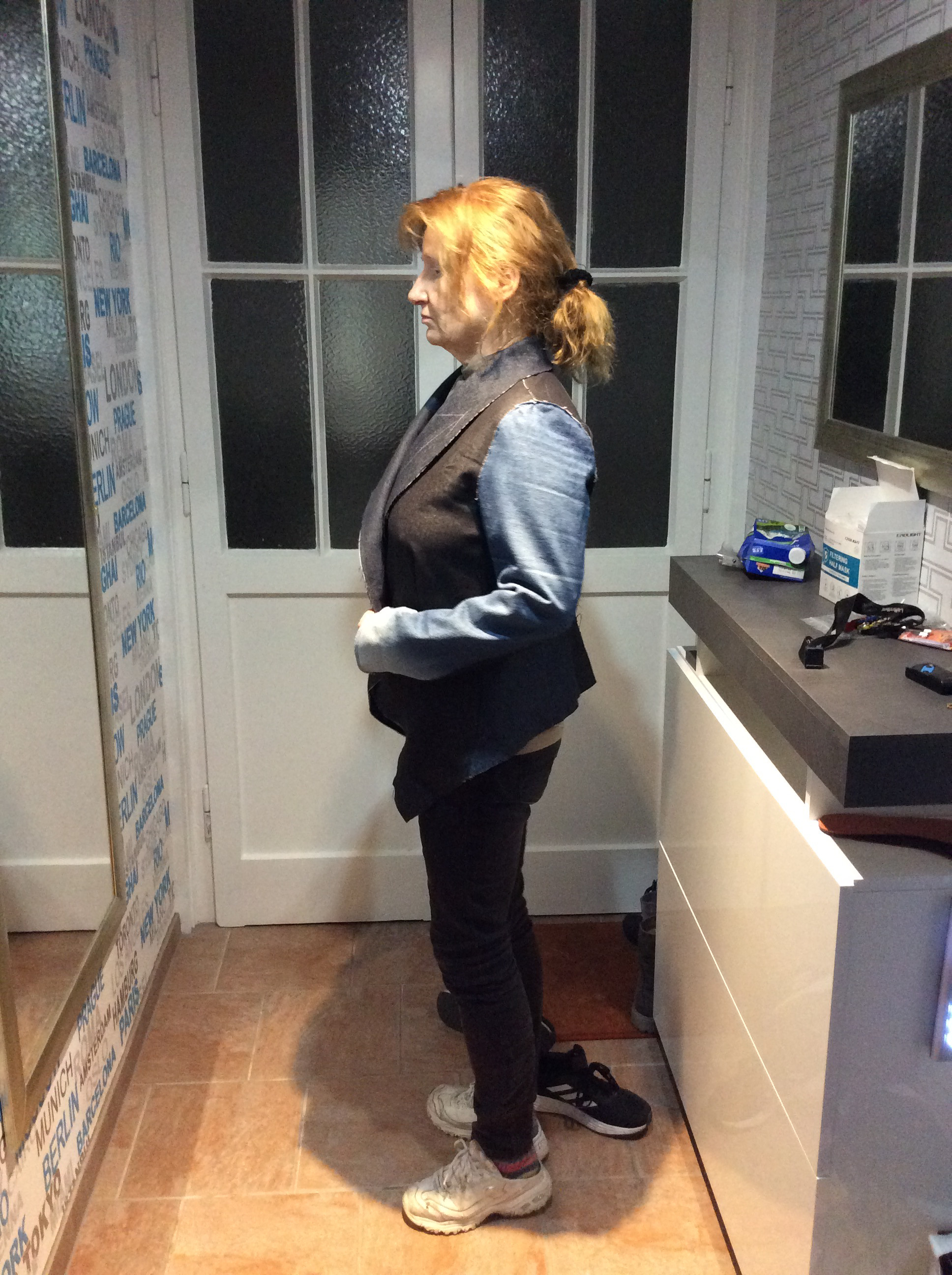 Probe genäht aus Jeansstoff. Viel zu groß, allerdings habe ich nur einen halben Zentimeter überlappend gearbeitet.