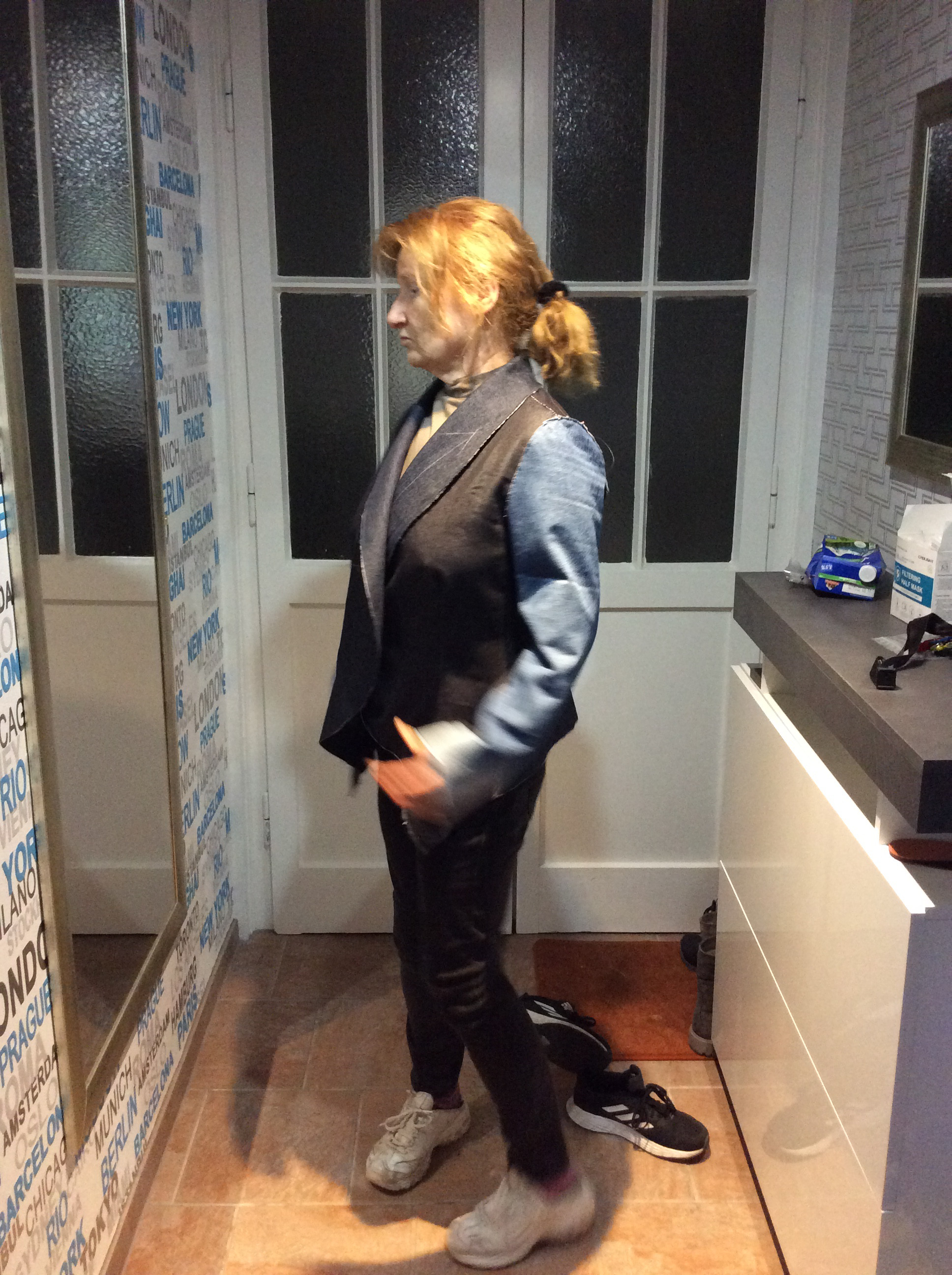 Probe genäht aus Jeansstoff. Viel zu groß, allerdings habe ich nur einen halben Zentimeter überlappend gearbeitet.