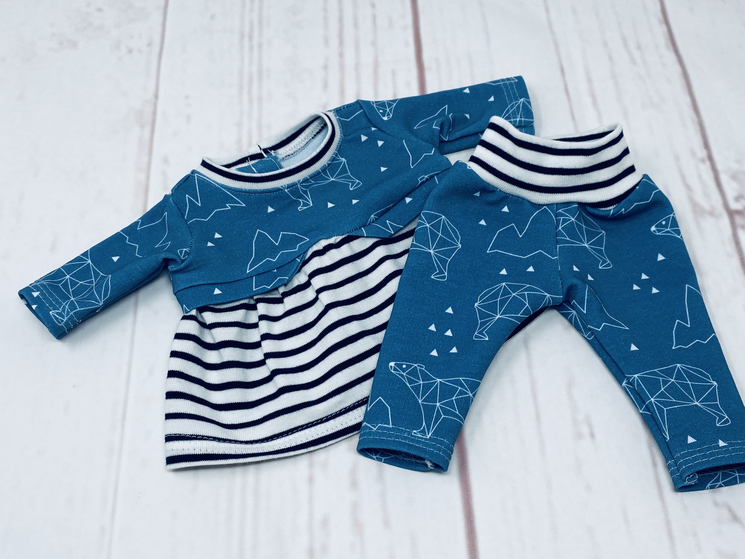 hier das Puppenset aus den Resten des Eisbär Jersey: für die Baby Annabell Puppe mit 36 cm. Schnitt ist von Schleiferlwerk und der Girly Sweater entspricht dem Schnitt für Kinder.