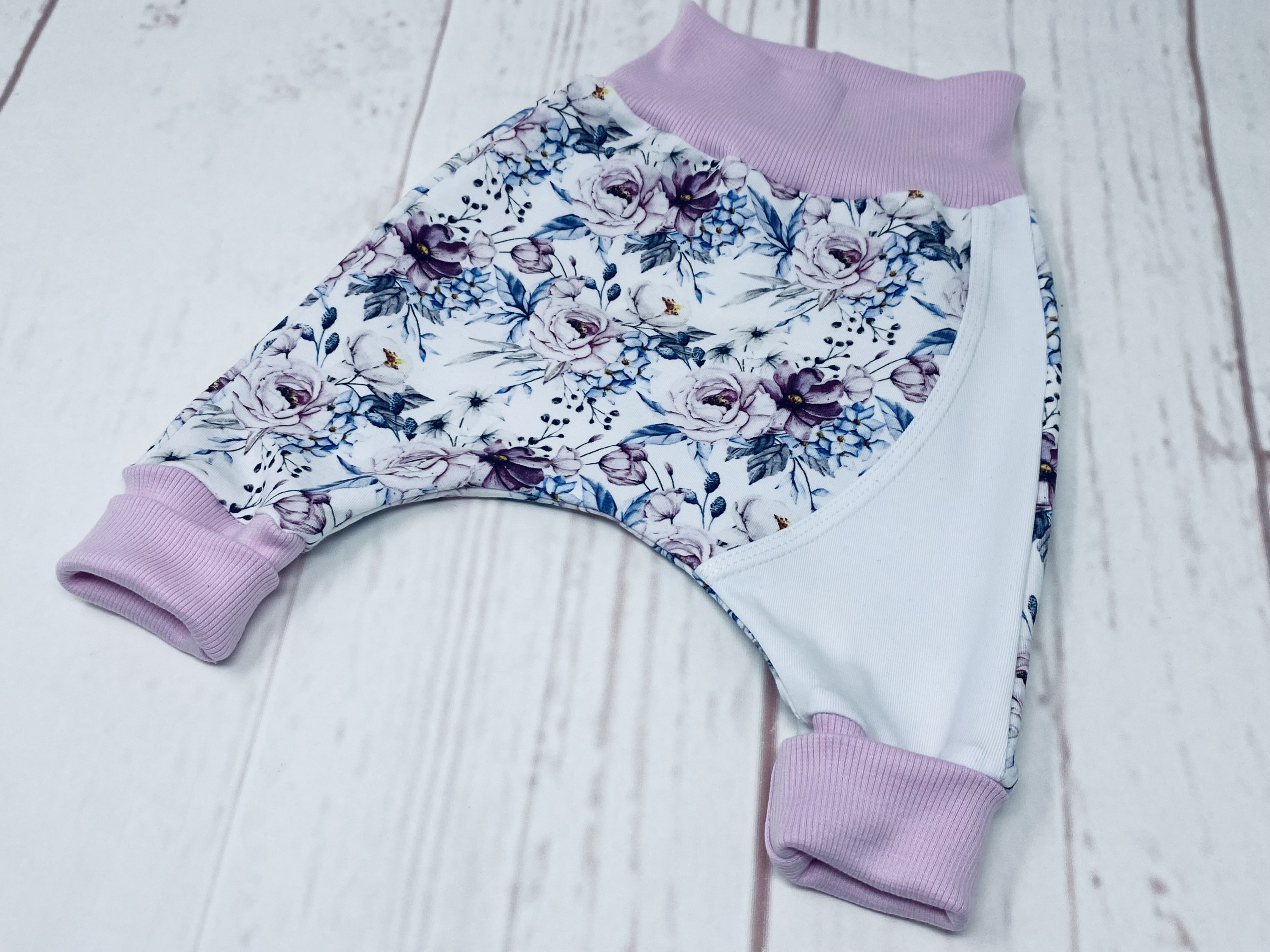ich fange mal an, die Bilder aus dem Rosenstoff hochzuladen. Zuerst fertig war diese Babyhose mit Teilungen in Größe 56.