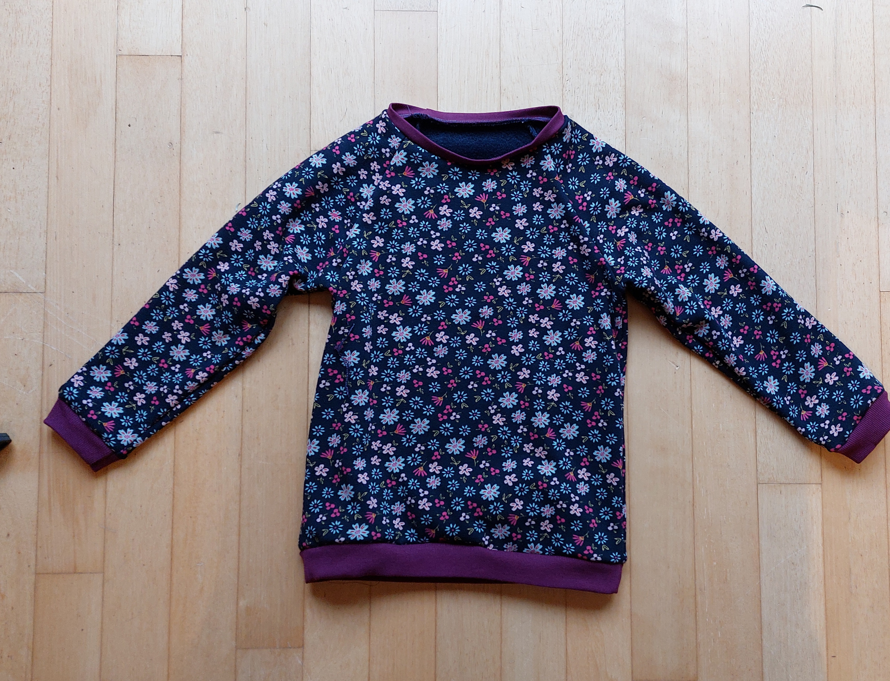 Den kleinen Raglan-Sweater habe ich aus den Resten für meine 4-jährige Nichte gemacht.