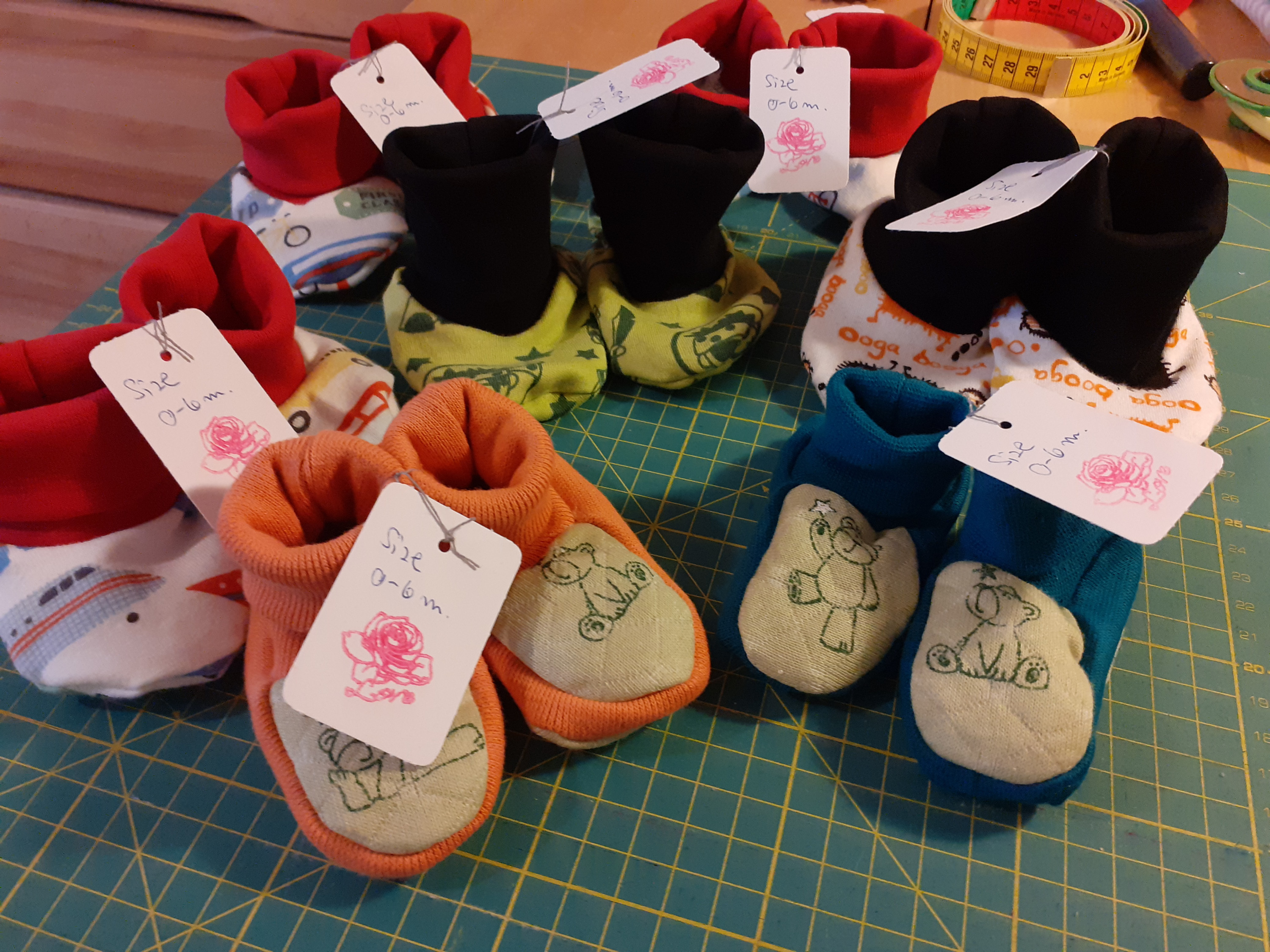 Dieses Mal alles Gr. 50-56, das sind Jolly Jumper und - Strampler, Mützchen, 2 Sorten Schühchen (Mein Favorit ist der Tippy Toe 2.0) , 2 x Hose RAS und ein Trotzkopf.