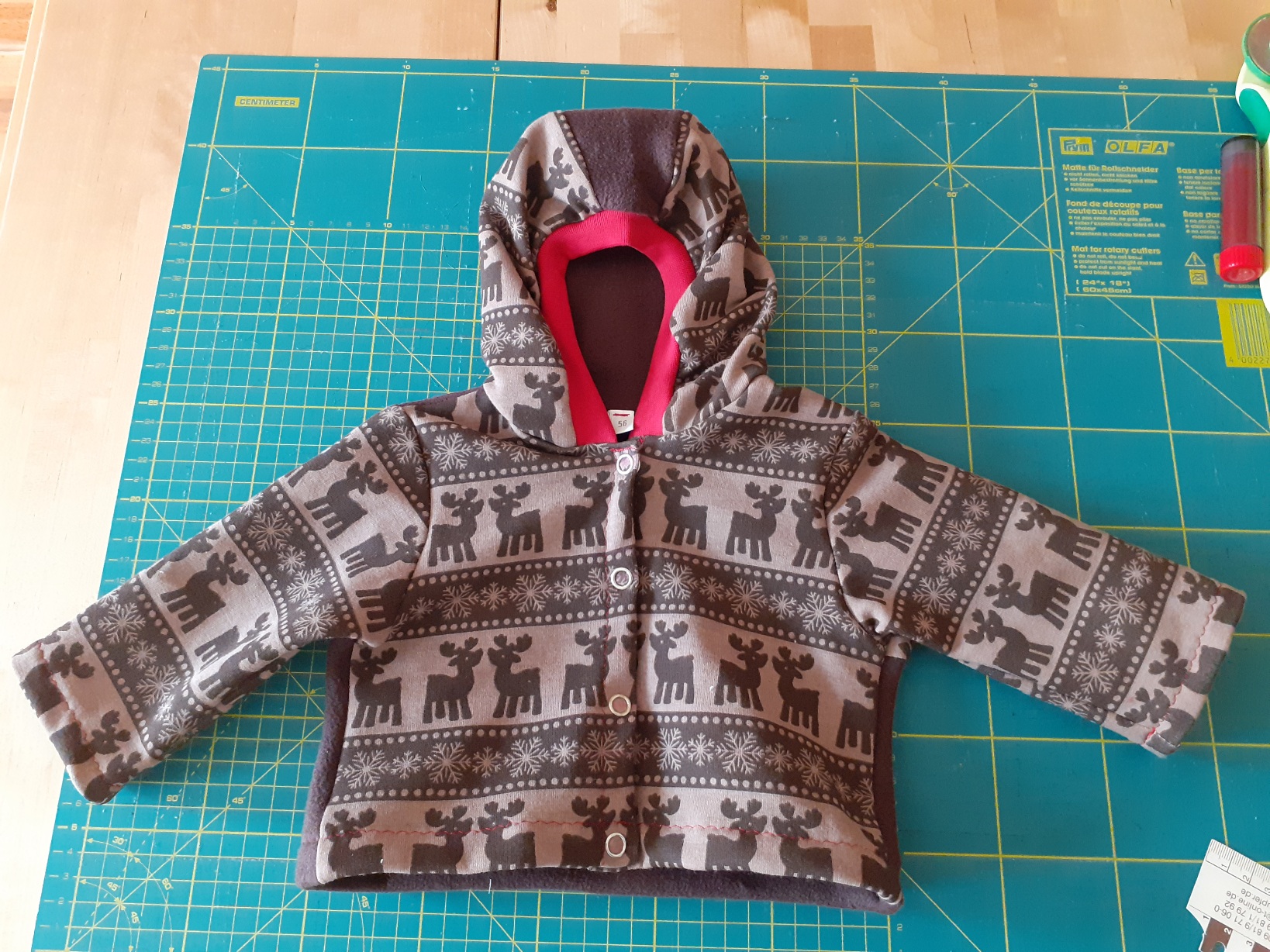 Vieles konnte ich second hand kaufen, aber Strampler, Jacken bzw. Overall, Schühchen und Dreieckstücher sind fast alle genäht.