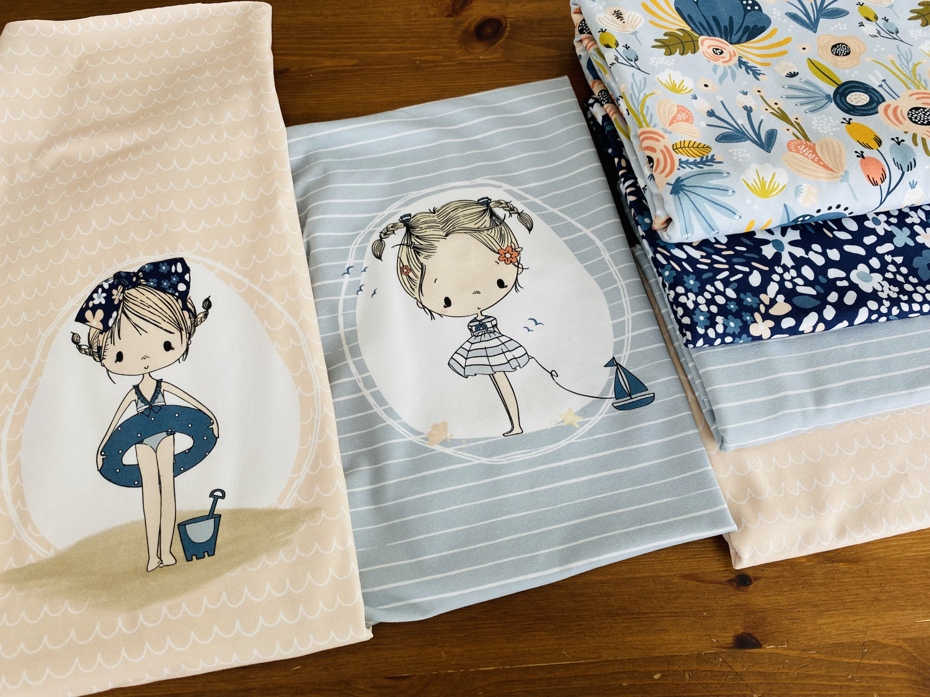 Ich möchte daraus gerne 2 Kombis nähen: einmal ein Cutie Shirt und dazu eventl. eine kurze Hose. Und nochmal einen neuen Schnitt für ein Top und dazu eine kurze Pumphose, auch ein neuer Schnitt.