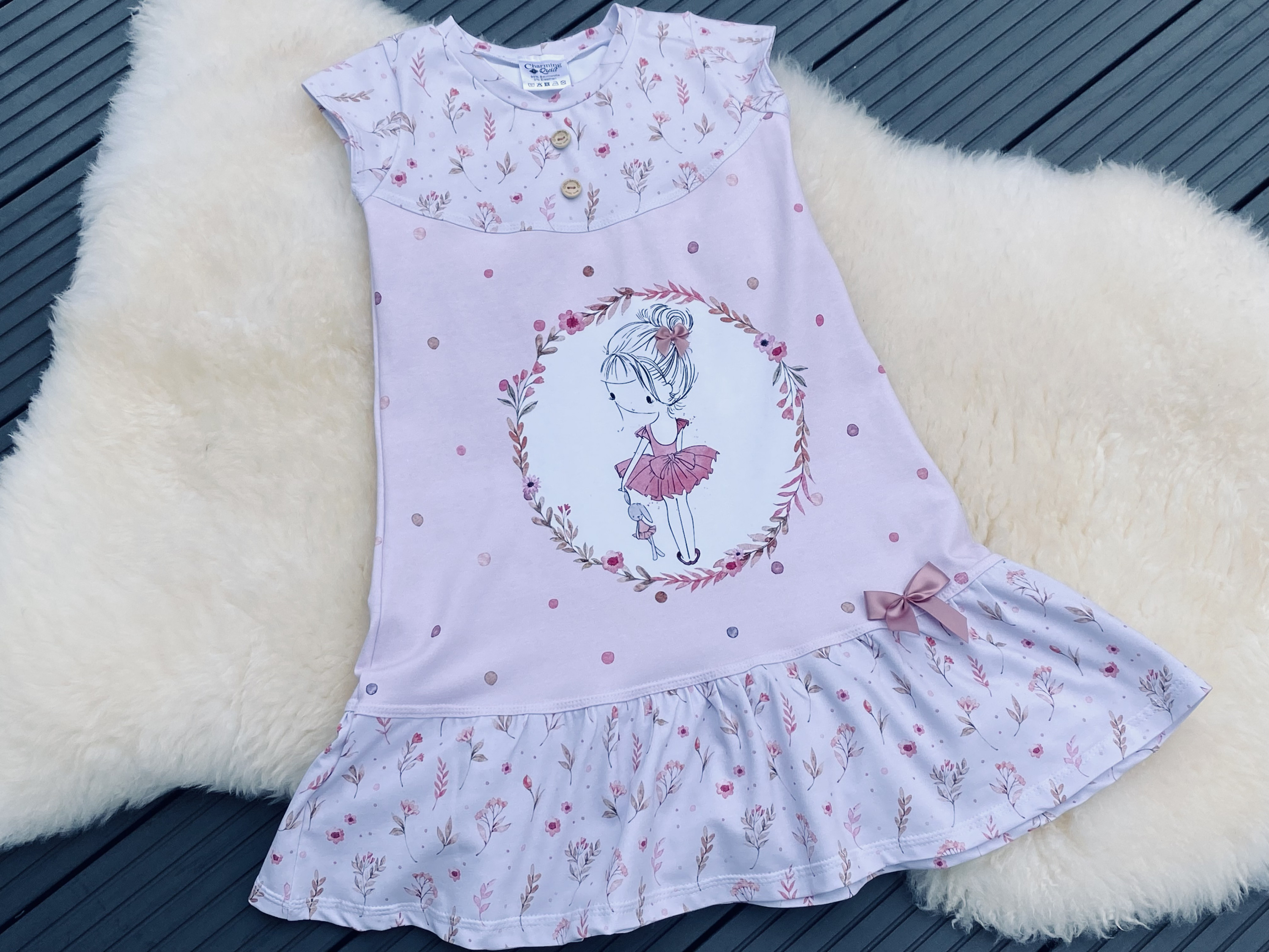 Heute mal eine luftige Version - ich habe die Kappärmelchen gewählt. Und natürlich wieder Schleifen aus dem Vorrat und zwei Handmade-Knöpfe. Habt ihr die Minischleife am Haarknoten der Ballerina entdeckt?