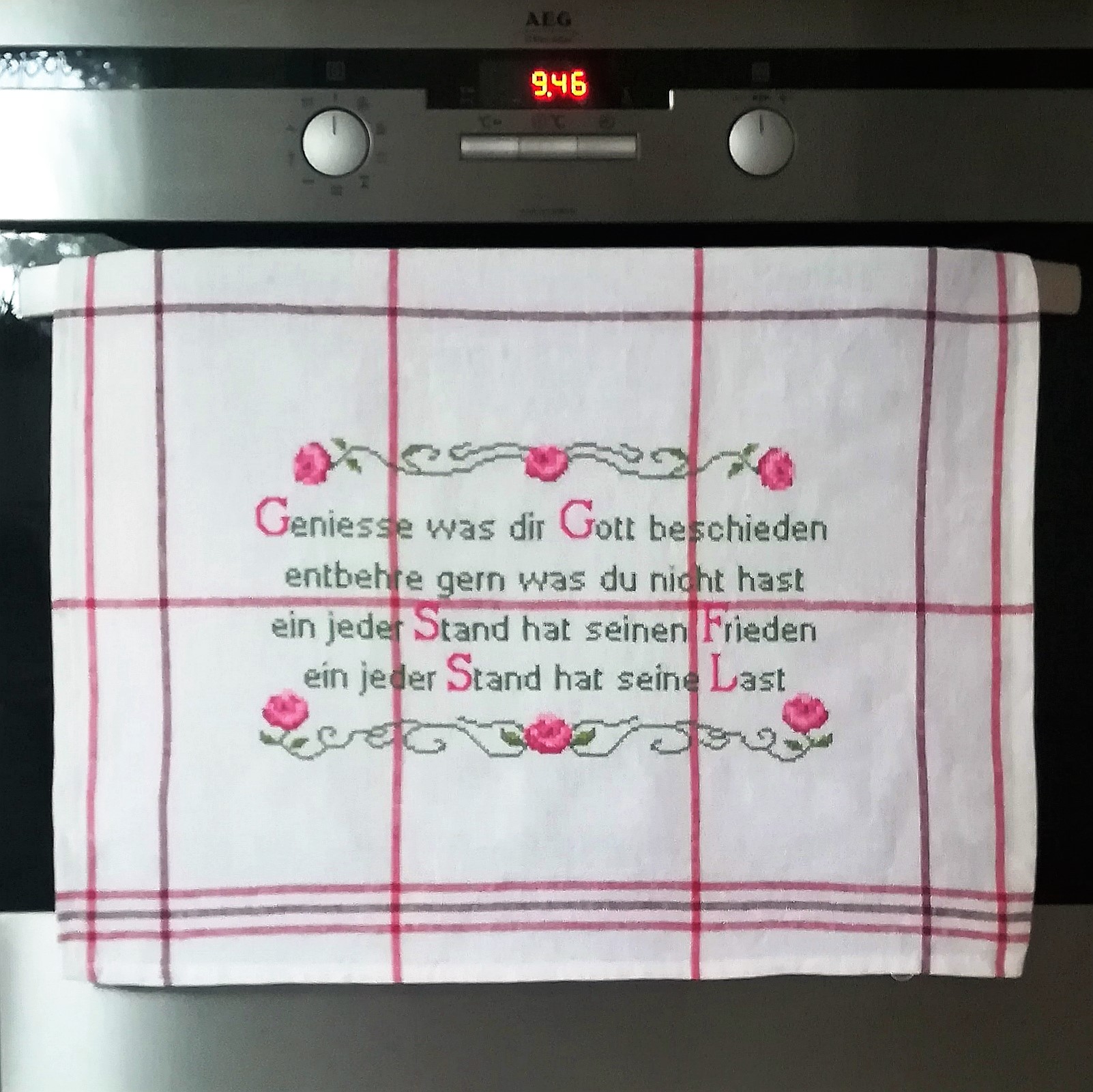 Mit der Stickmaschine auf Halbleinen mit Baumwollgarn.