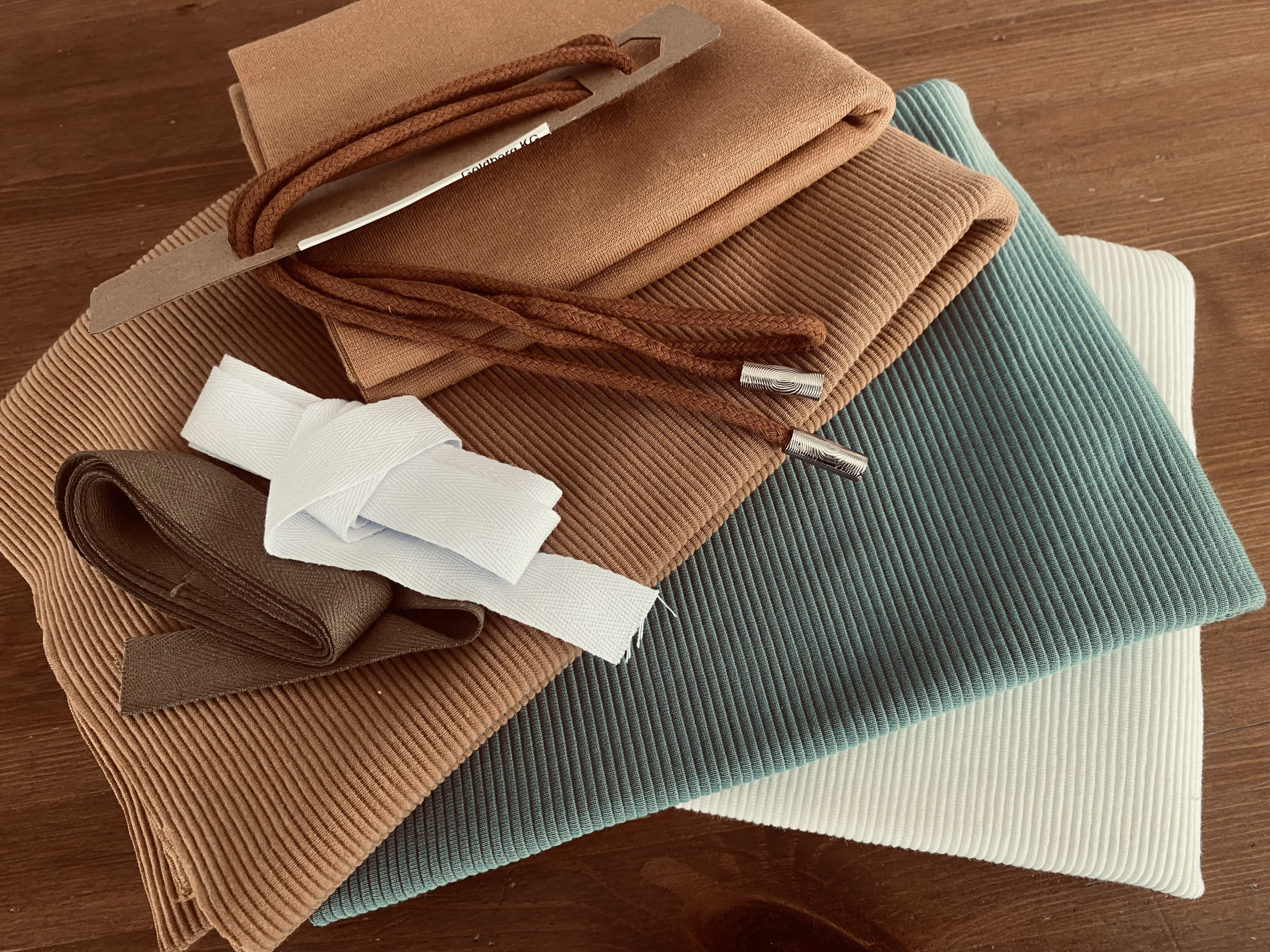 diese Stoffe sind mir heute über den Weg gelaufen: das soll ein Hoodie für die Murmel im Color Blocking werden. Mal sehen, ob ich dafür einen bestehenden Hoodie abändere oder ob ich mir das Schnittmuster gönne, dass mir im Kopf rumspukt.