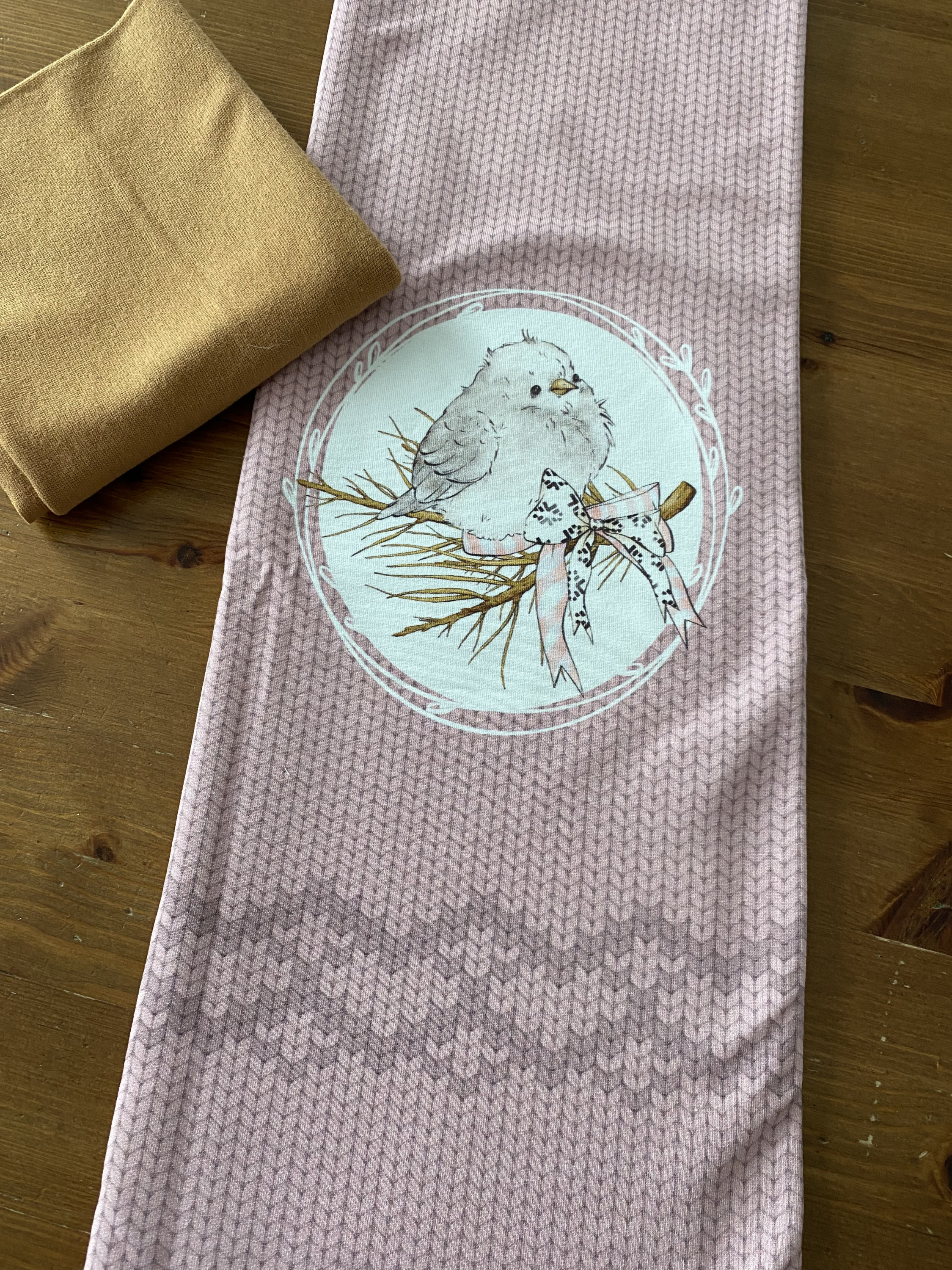 hier kommt ein Panel vom letzten Jahr, dass ich da schon im Sale gekauft hatte. Das reicht genau für ein Shirt mit Vorderseite und Rückseite, wenn man noch mit Basics ergänzt. Ich werde weiß uni dazu kombinieren und ich habe ein Bündchen im Vorrat gefunden, das 100%ig zum goldenen Farbton im Panel passt.