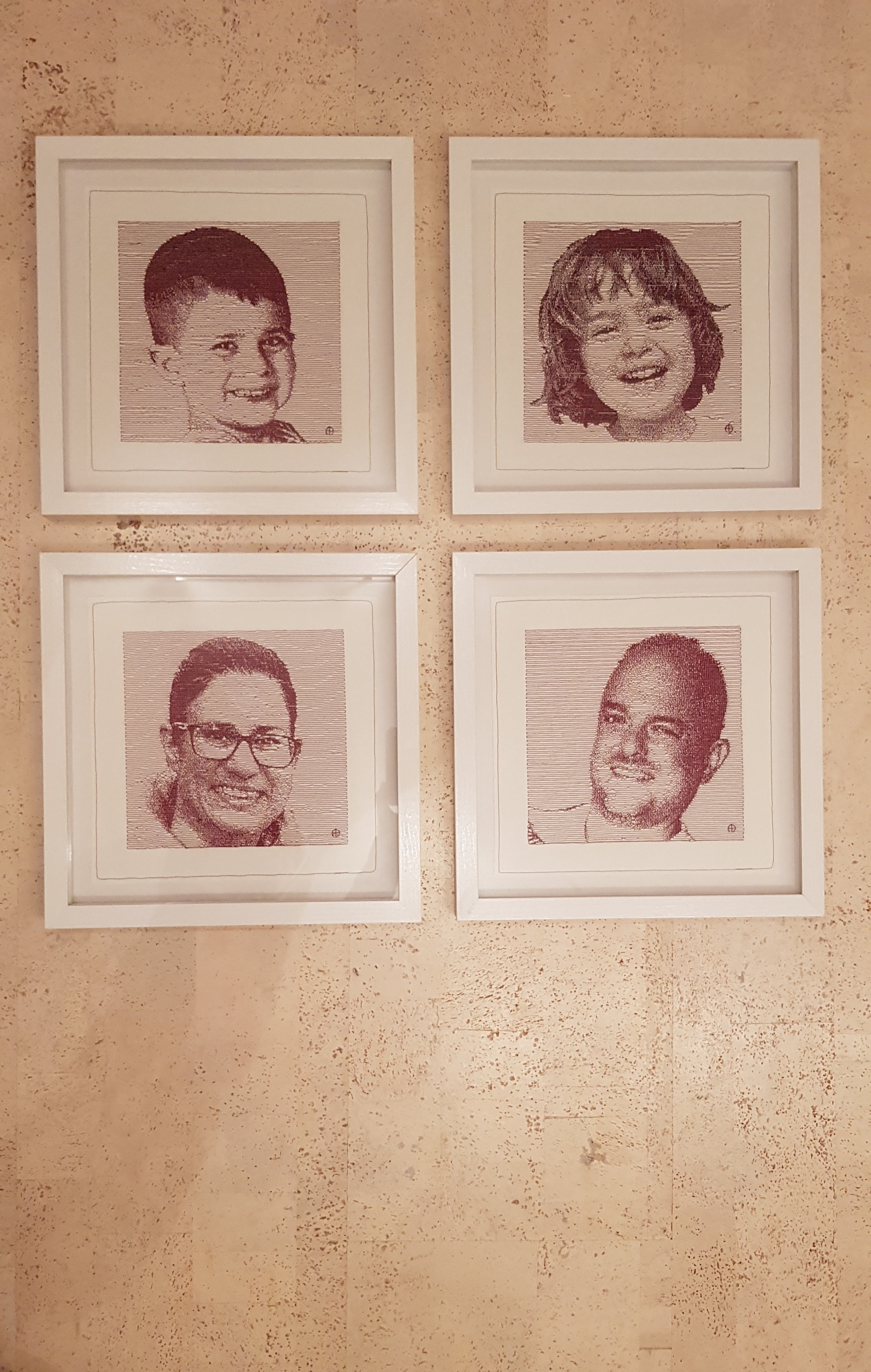 Für die Befestigung der linearen Fotostitch-Stickereien in den Bilderrahmen habe ich mich jetzt doch entschlossen, sie nach leichter Fixierung mit Sprühkleber einfach auf das Passepartout zu nähen.