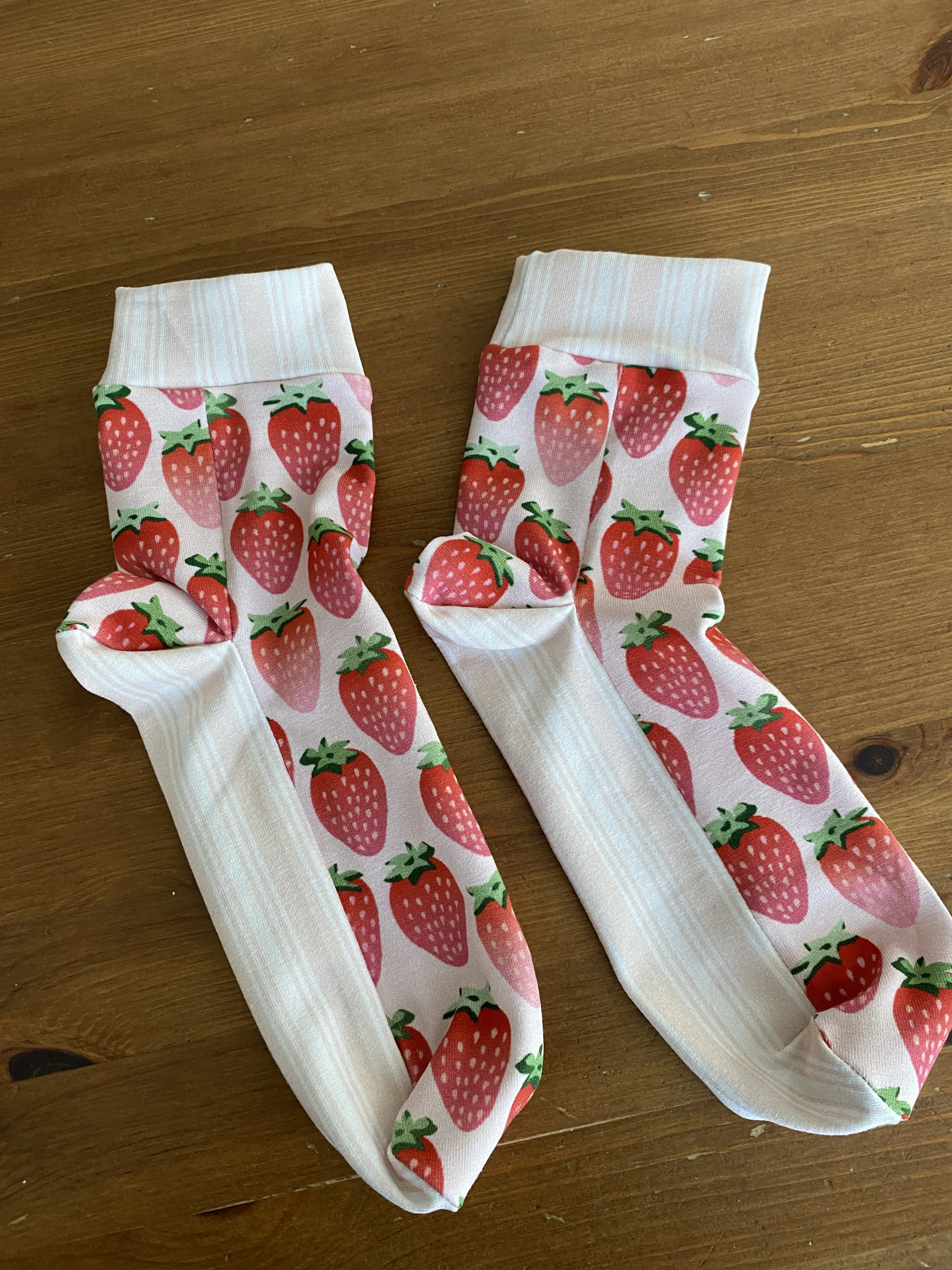 Ich würde bitte gerne ein Foto von den angezogenen Socken sehen und den Kommentar deiner Tochter bezüglich des Tragekomforts lesen.