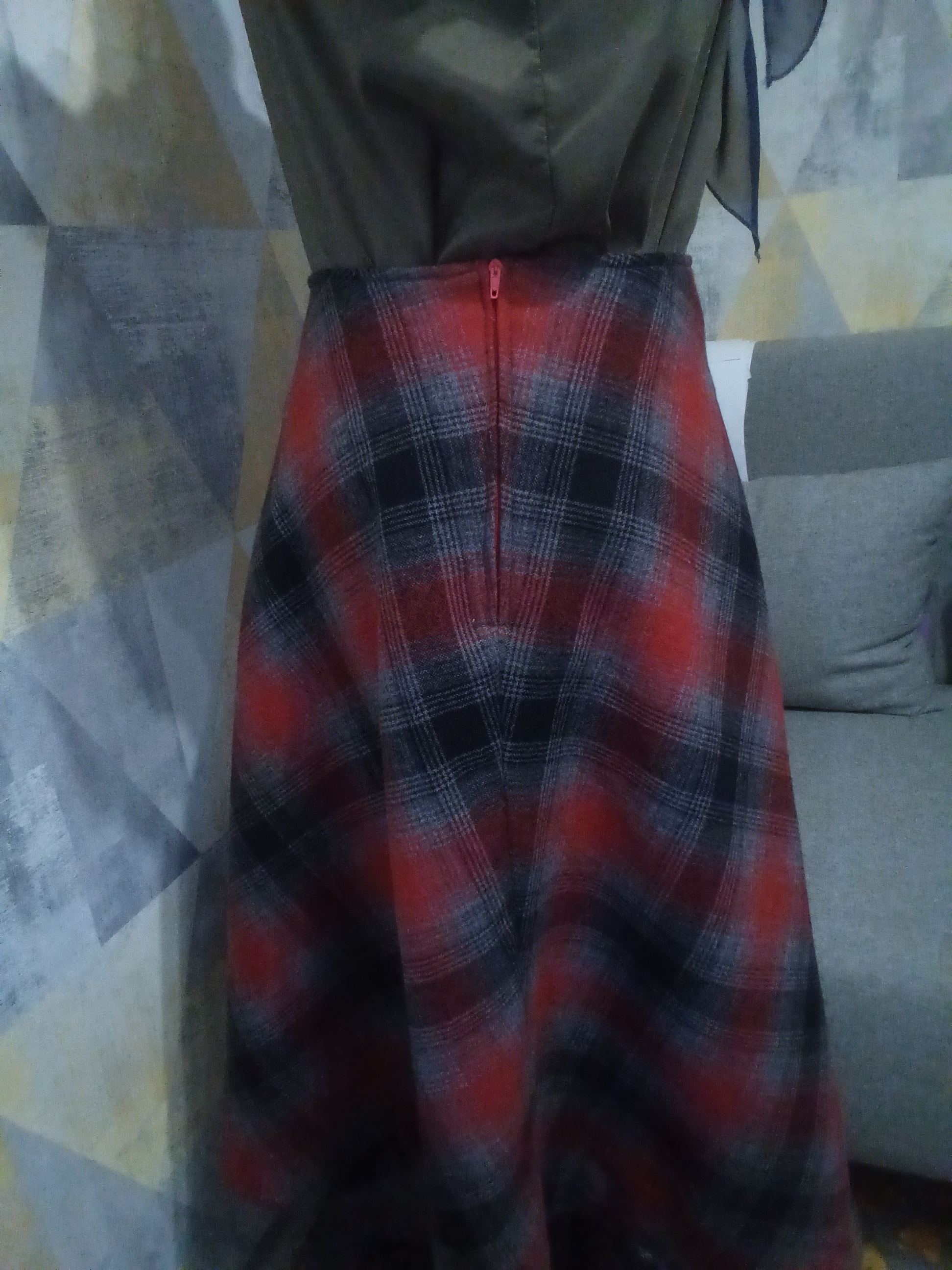 Schräger Rock mit Karo in Größe 36, ohne Änderungen
