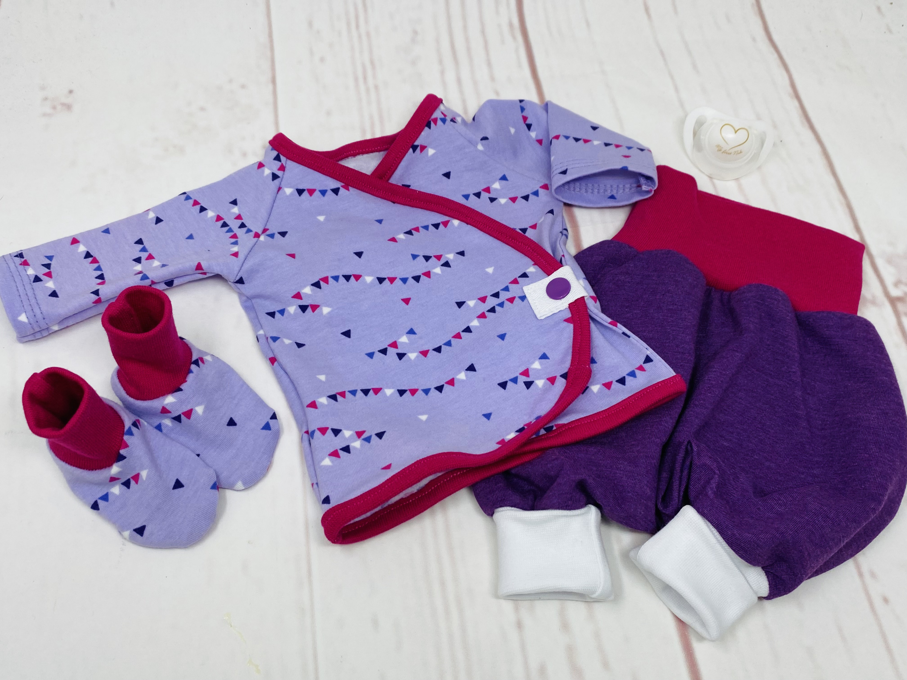 für eine ehrenamtliche Organisation nähe ich Frühchenkleidung. Dieses süße Set ist aus gespendeten Stoffen entstanden - in Größe 44 reichen ein paar cm Jersey und Bündchen, um noch winzig kleine Teile zu nähen.